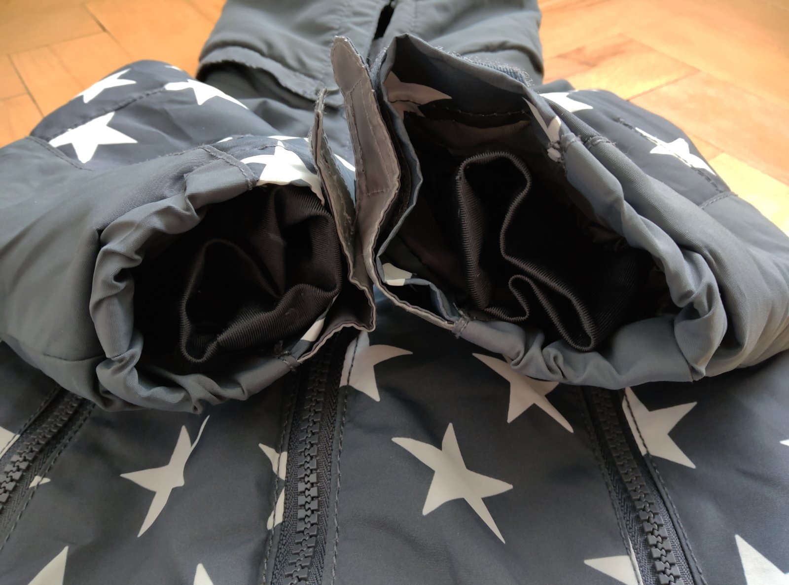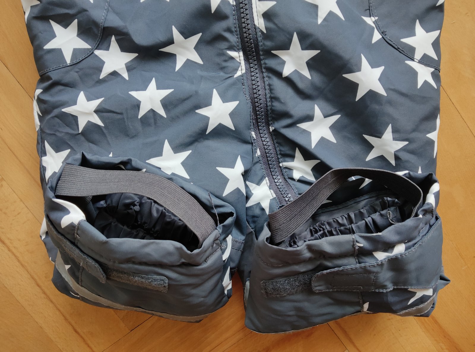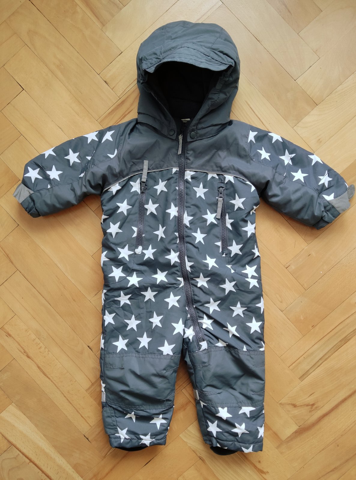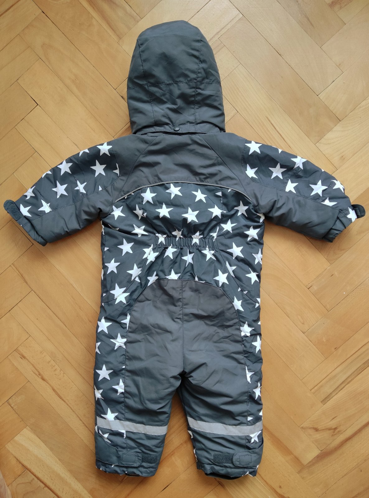 Pekný overal na zimu,"topanočky" sa dajú odopnúť,kapuca je napevno.