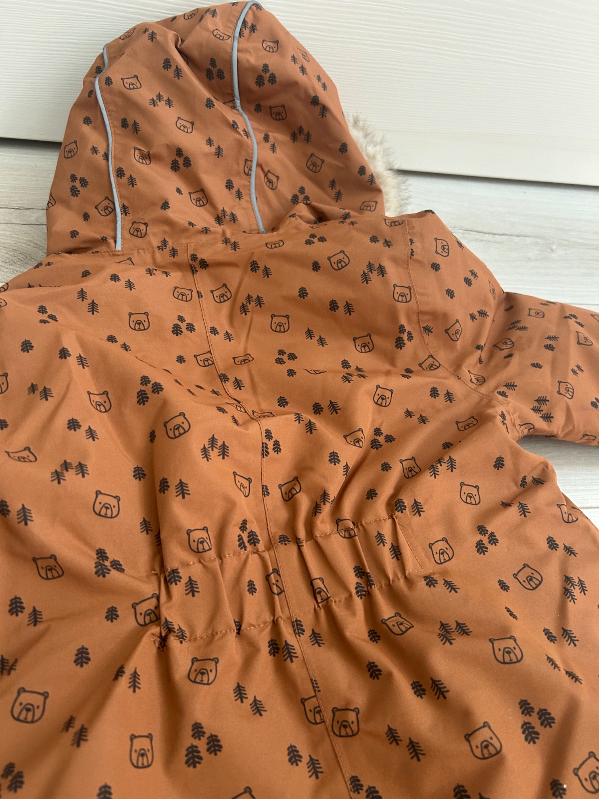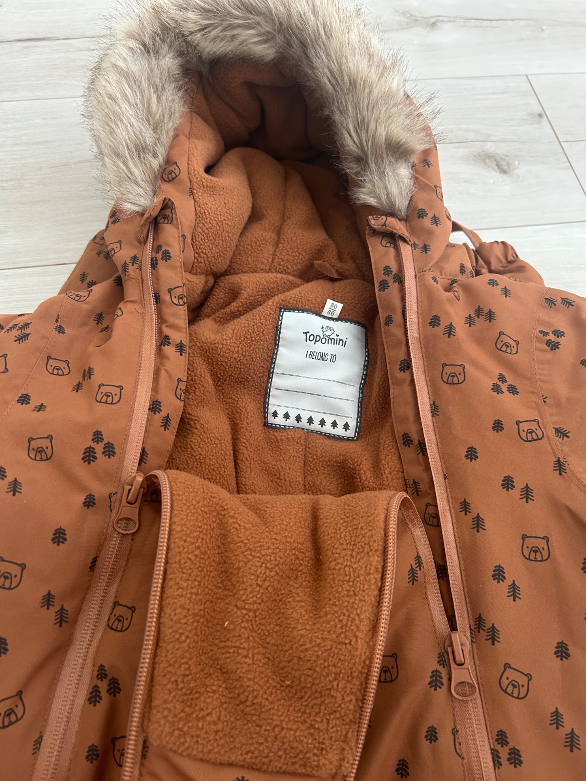 Kombinéza bez kapucne. Spodky noh osuchane ako na foto. Bledsia farba. Píšu veľkosť 80, na 9-12 mes. Nám Ked SME nosili 86,bola Este vacsia,tak asi.sedi.skor na také väčšie číslo. Mozem premerat. T...
