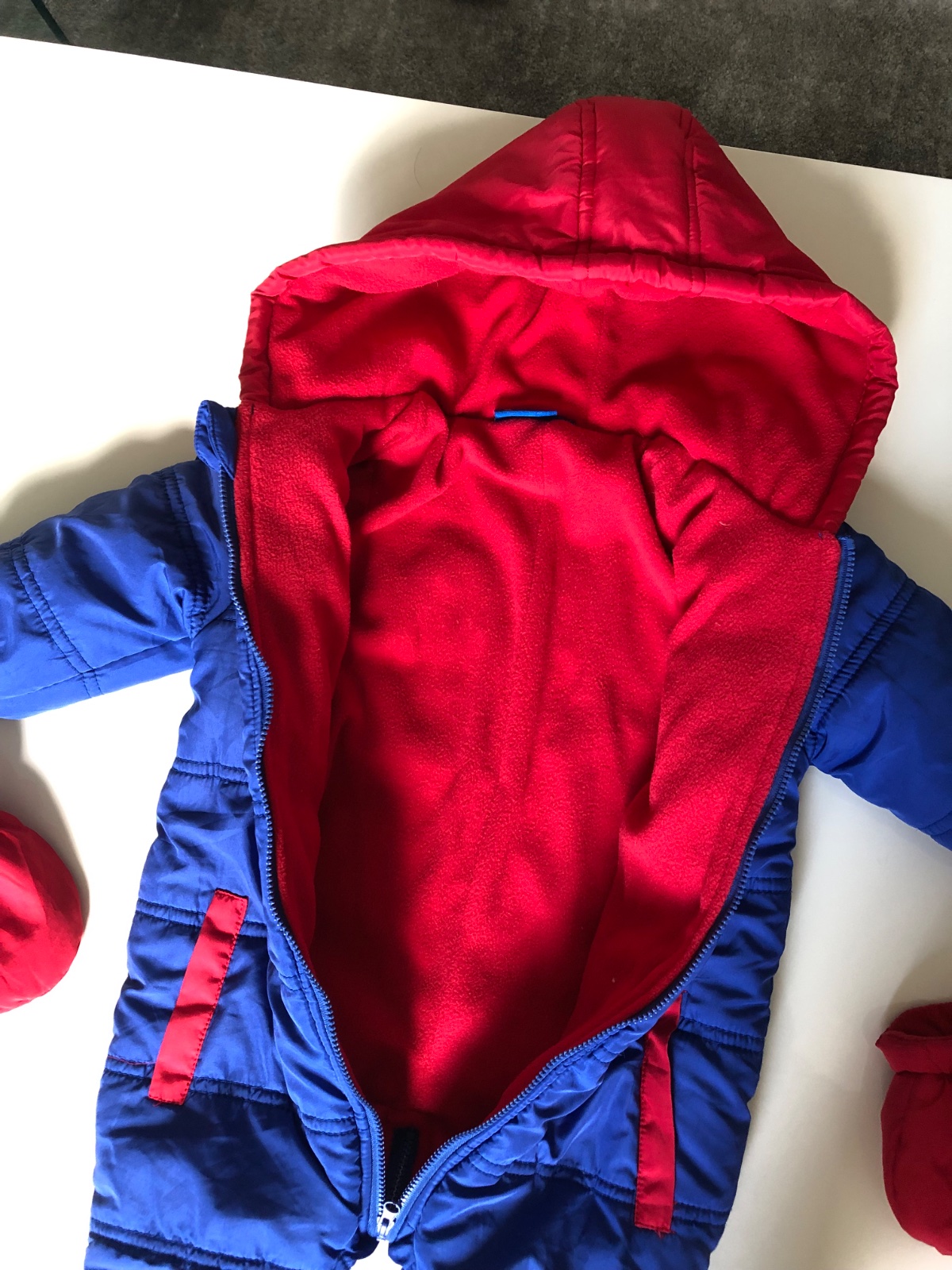 Predám kombinézu, veľkosť 6M, rozmery viď foto. Je vo výbornom stave, má len nad vreckom škrabanec do látky pri roztiahnuti s malou dierkou, dá sa našiť napr. z rukavičky znak, ale nie je to viditeľné. Cena 9+postovné
