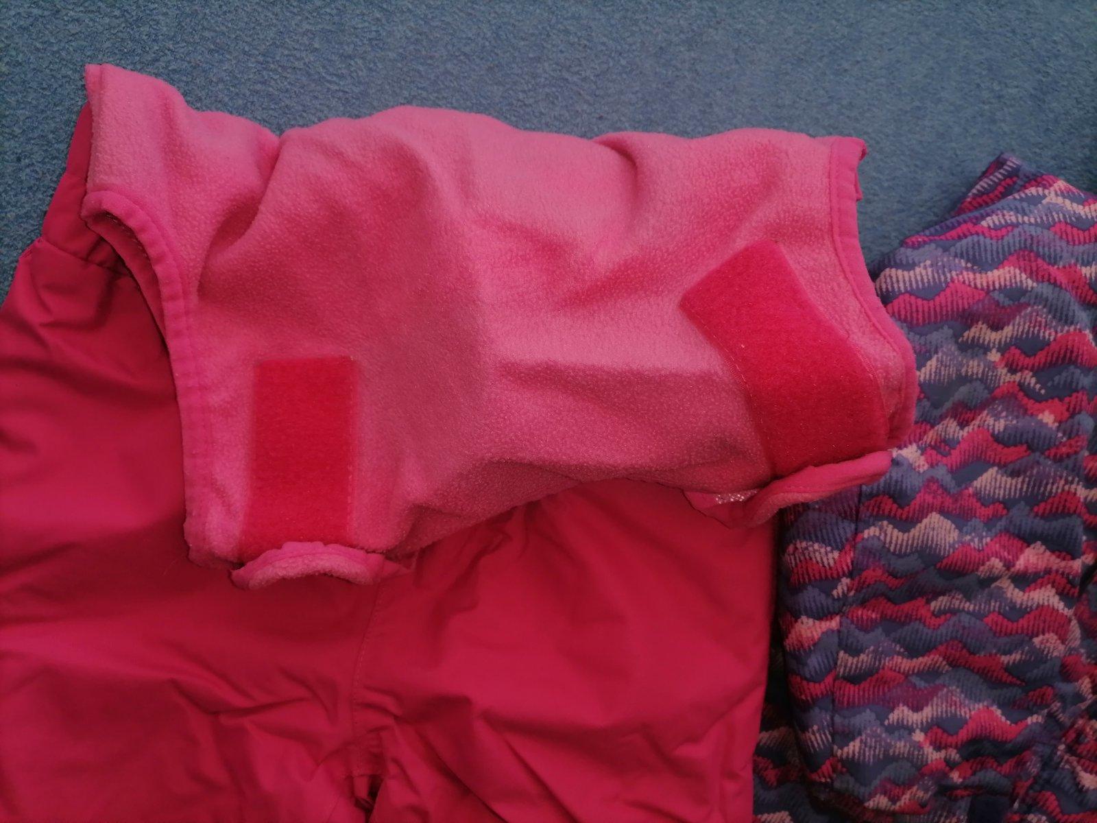 Perfektná, teplučka súprava pre dievčatko. Vo vynikajúcom stave. Nastaviteľné nohavice, neosuchane spodky oteplovakov, zosilnené kolená a zadok. Reflexné prvky. Veľkosť 3 roky (98/104).