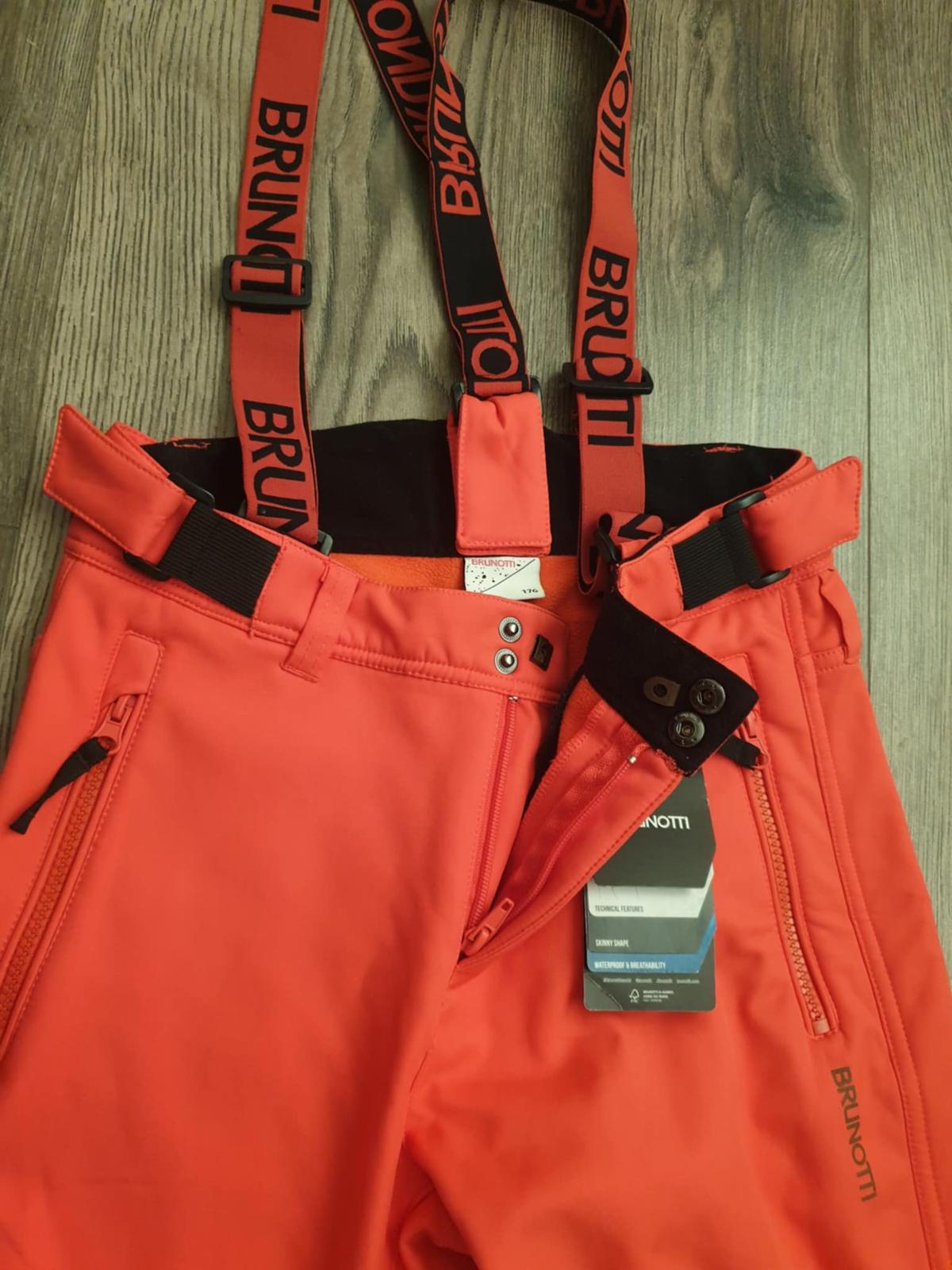 Ponúkam na predaj nové (ešte s visačkou), nenosené zimné lyžiarske nohavice pre dievča, zn. Brunotti. Veľ.176, celková dĺžka od pása dolu 108 cm, od rozkroku dolu 87 cm. Na bokoch pásu je guma so suchým zipsom, vďaka ktorému sa dá prispôsobiť veľkosť v páse. Veľkosť v páse bez natiahnutia = 70 cm. Traky sú odnímateľné. Cena je už aj s poštovným.