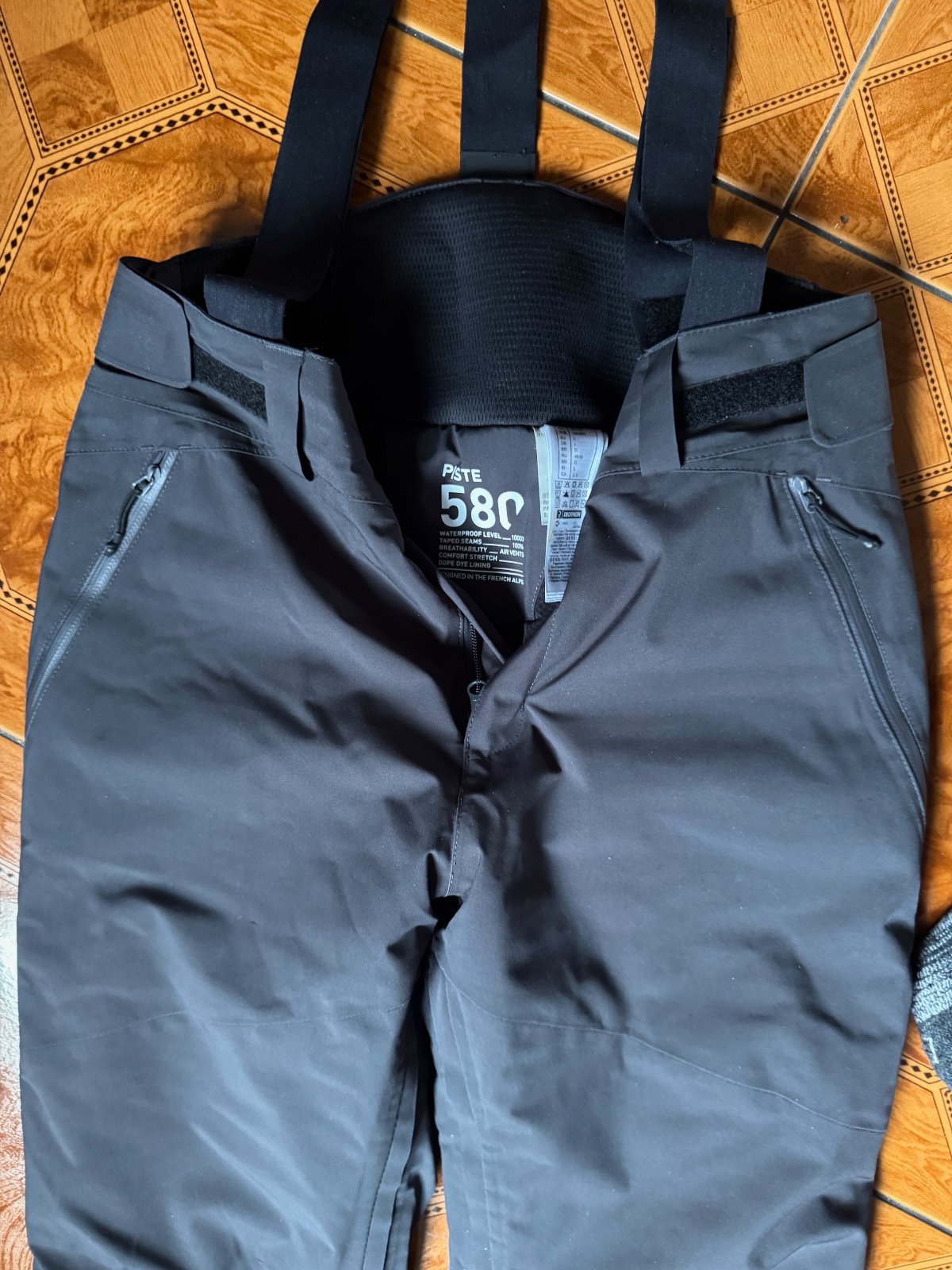 Ponúkam elegantné, šedé lyžiarske nohavice s trakmi PISTE 580 - L- výborný stav, hrejivé s nepremokavou membránou, málo nosené