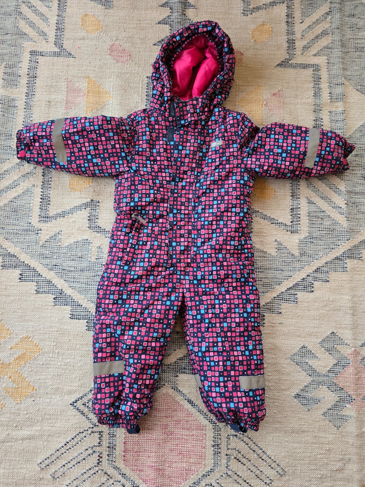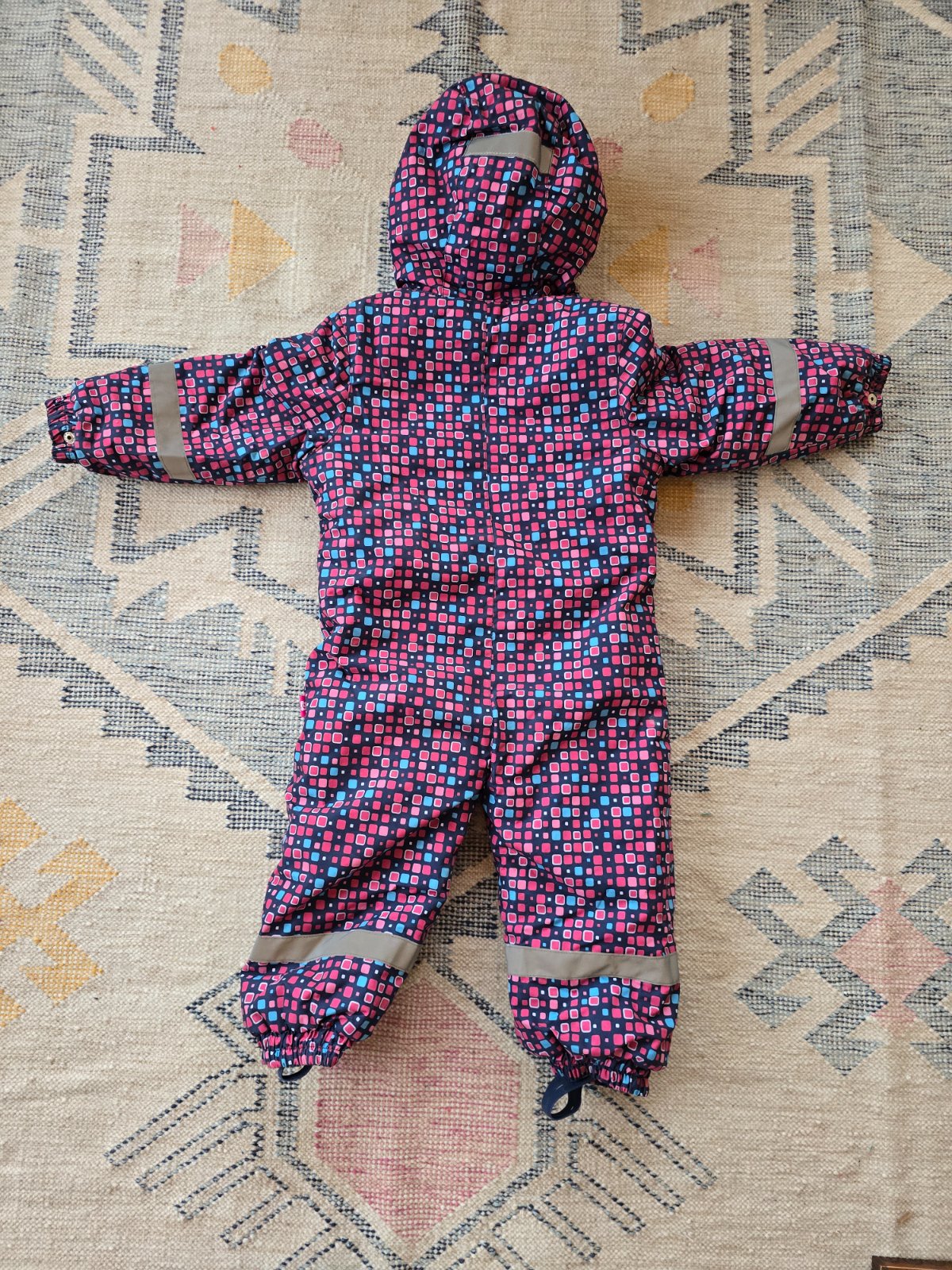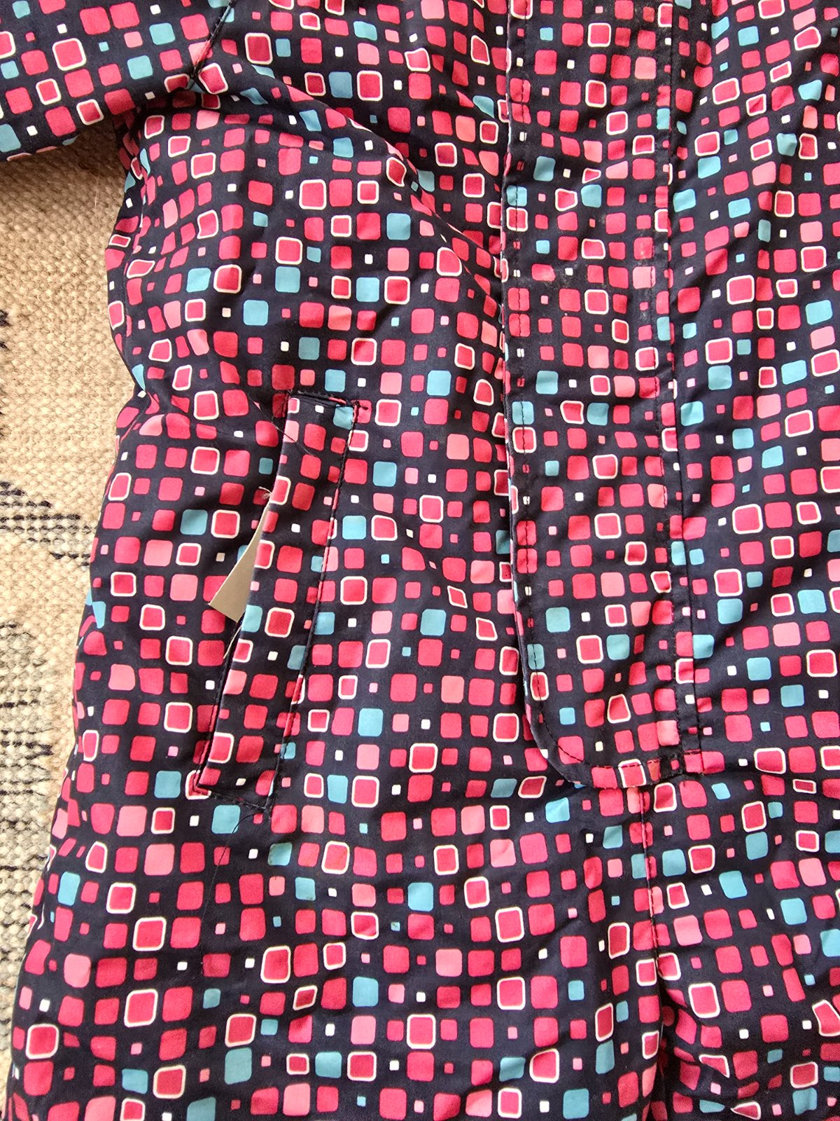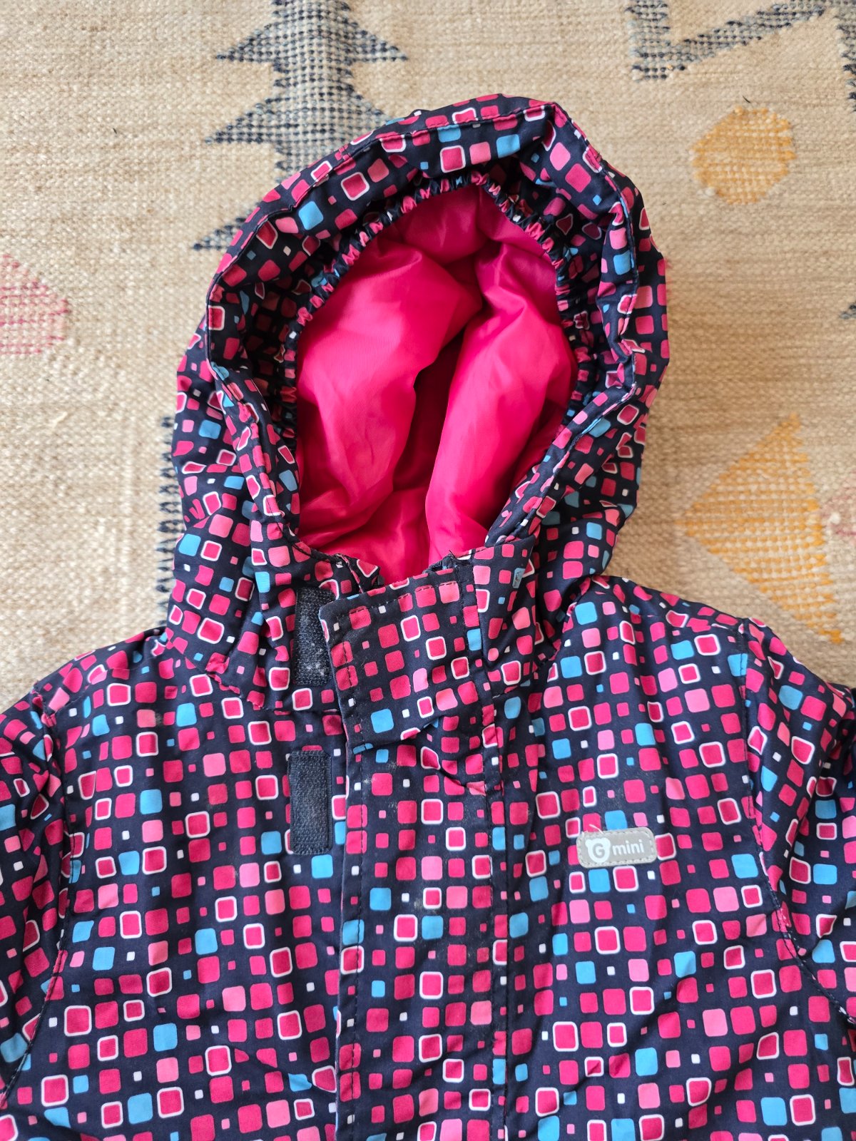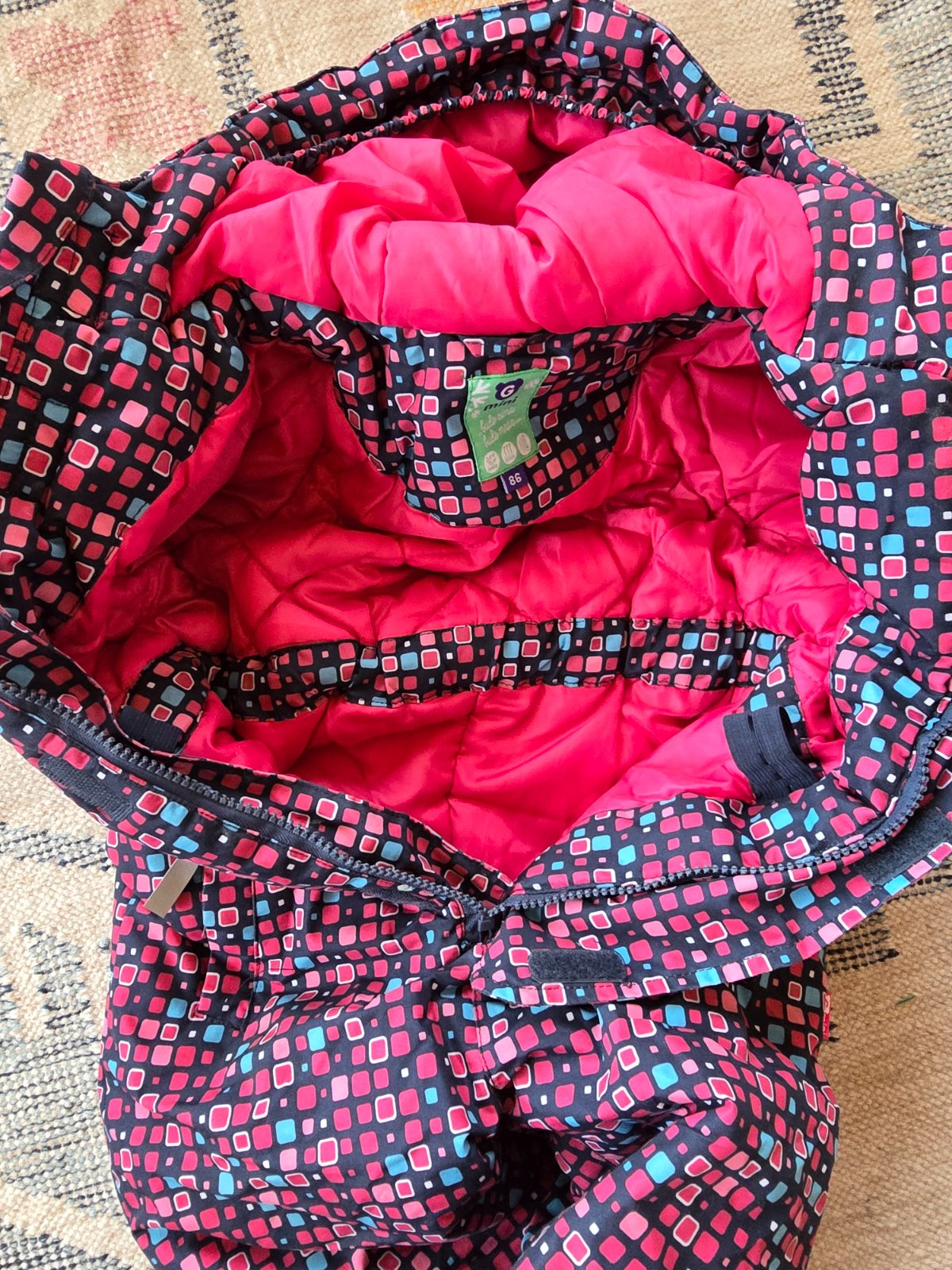 Malo noseny overal Gmini, vodny stlpec 3000. Vnutri ma stahovanie, reflexne prvky, gumicky na topanky, jedno vrecko. Ma jednu chybicku - chyba jazdec na zipse a jeden zubok - cize pri zapinani trosku zadrhne ked sa zapina ale inac OK.