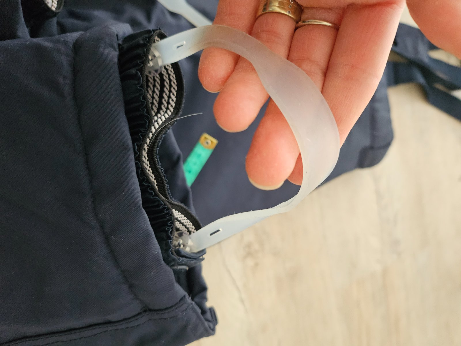 Asi 2x oblečené, jedna gumička roztrhnuta odspodu, inak bez poškodení, pekná modrá farbam