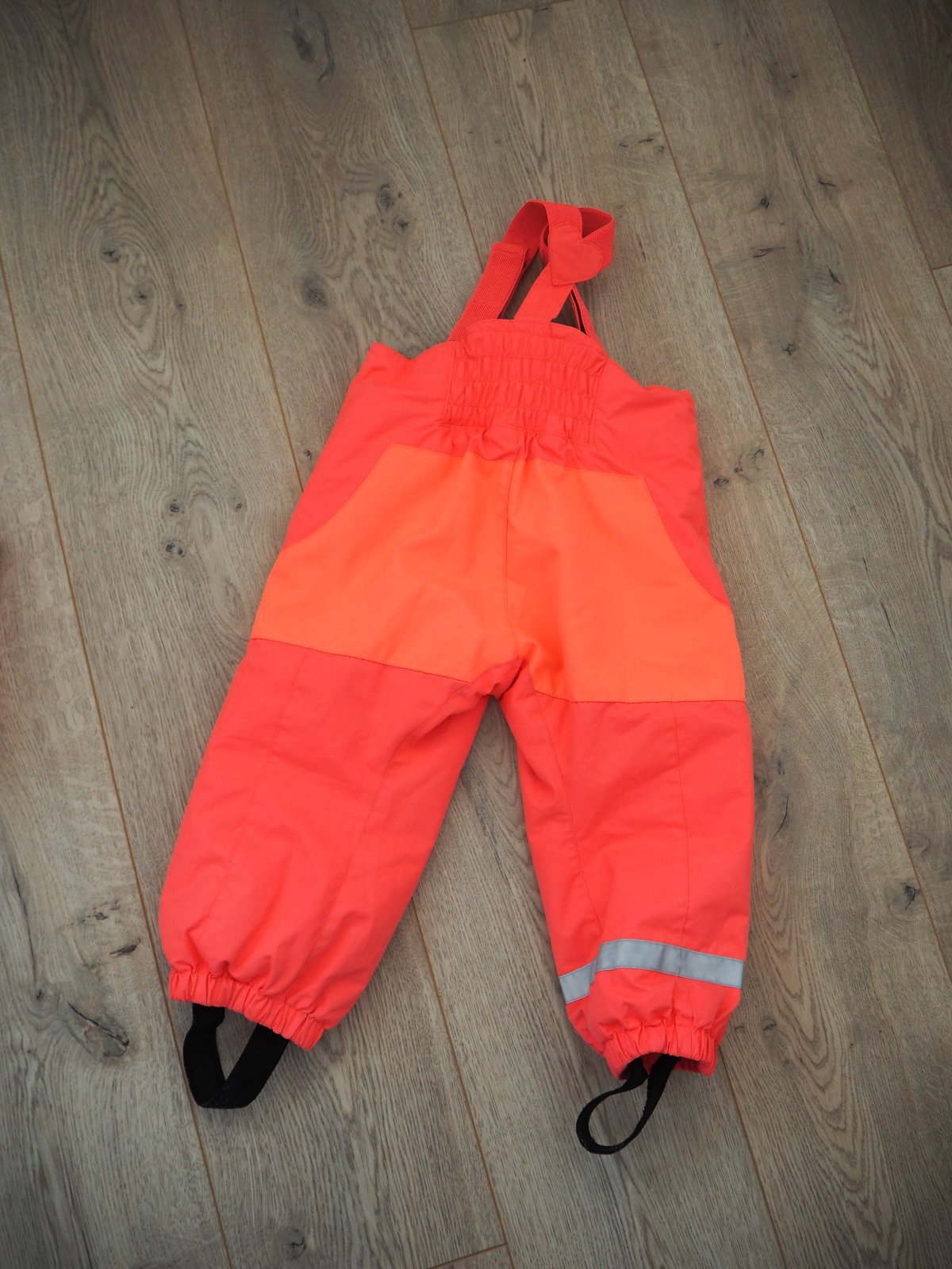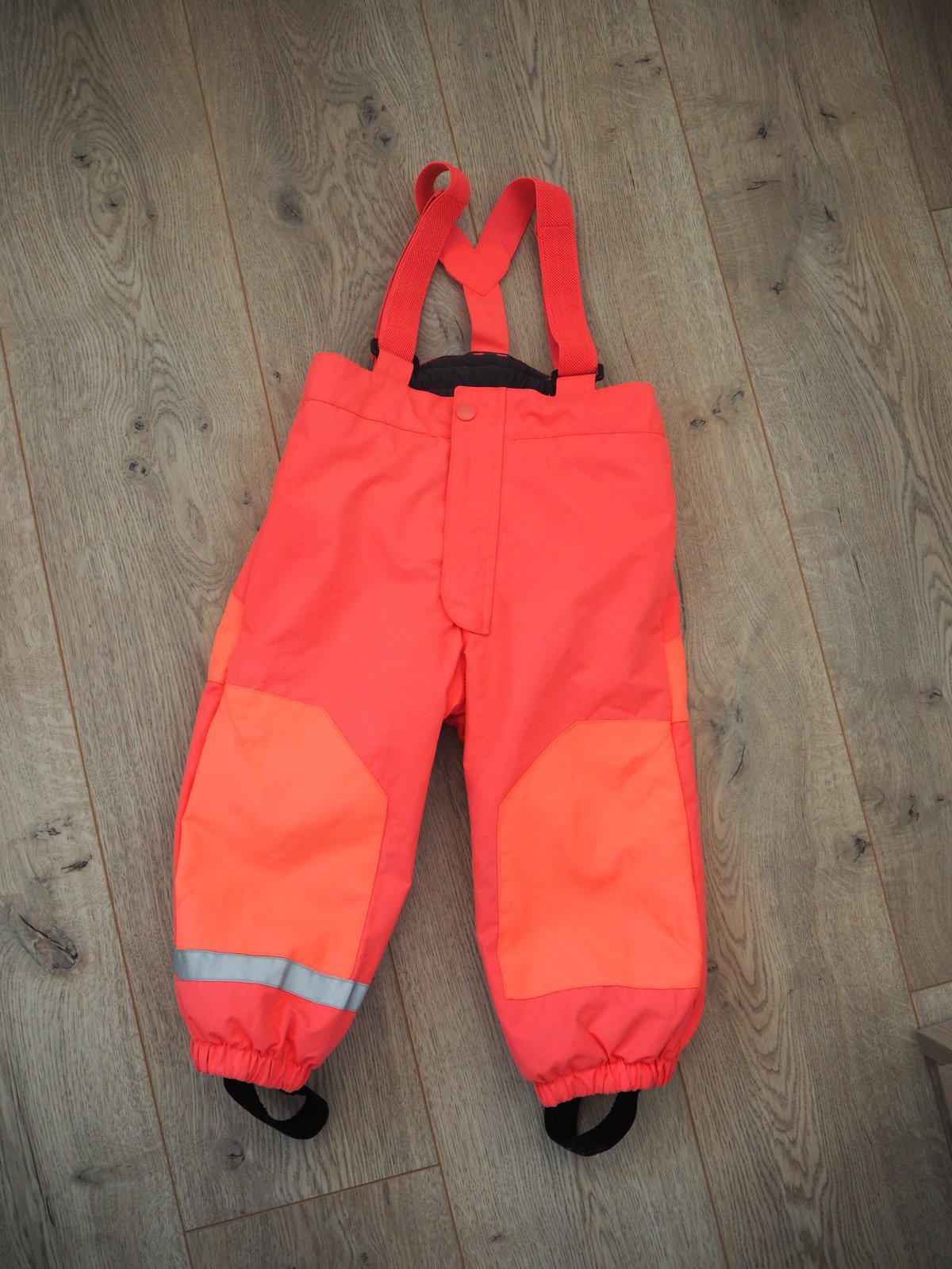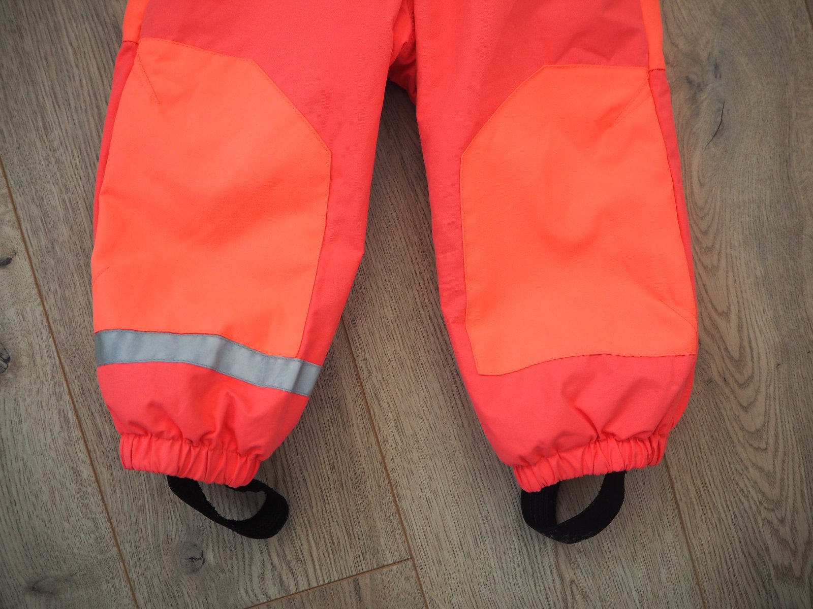 top stav! bez fľakov a poškodení , vodný stĺpec 5000 mm, priedušne, zosilnené v oblasti kolien a zadku voči oderu, traky sa dajú regulovať, reflexné prvky, z mojej strany veľká spokojnosť.