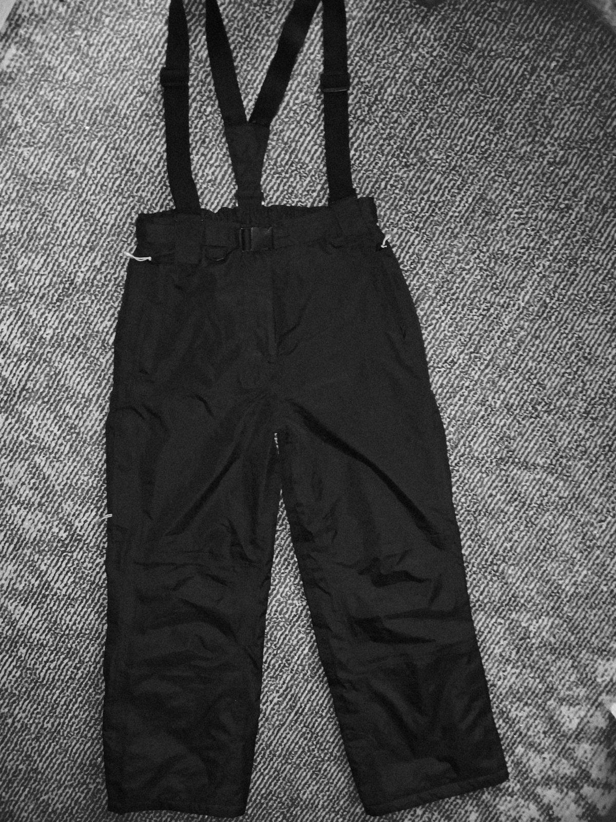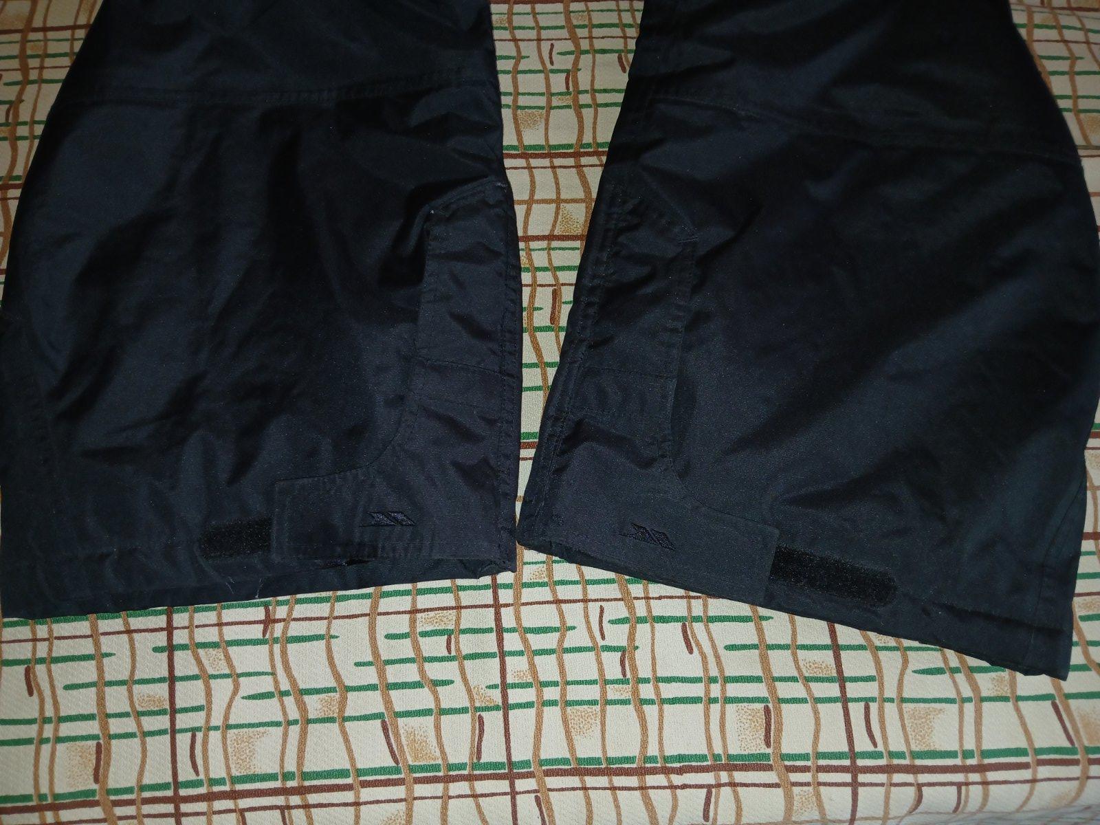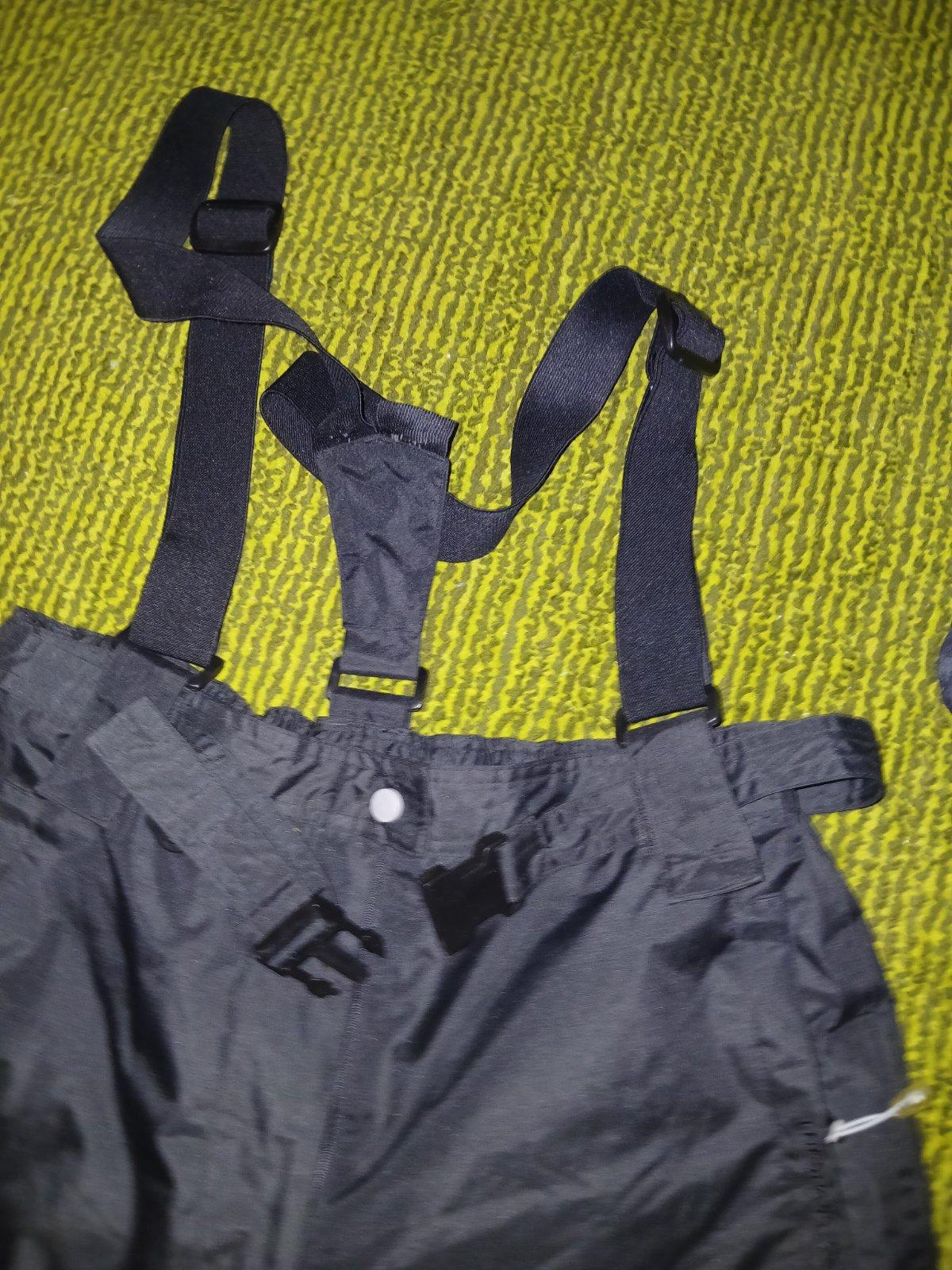 Značkove kvalitné, nepremokavé oteplovaky. Majú funkčné bočné vrecká so zipsom.. V zadnom diele pásu je guma a opasok na reguláciu pasu. Protisnehové návleky. Bočné vetracie otvory. Regulovateľné traky. Vo peknom stave, Nepoškodené.