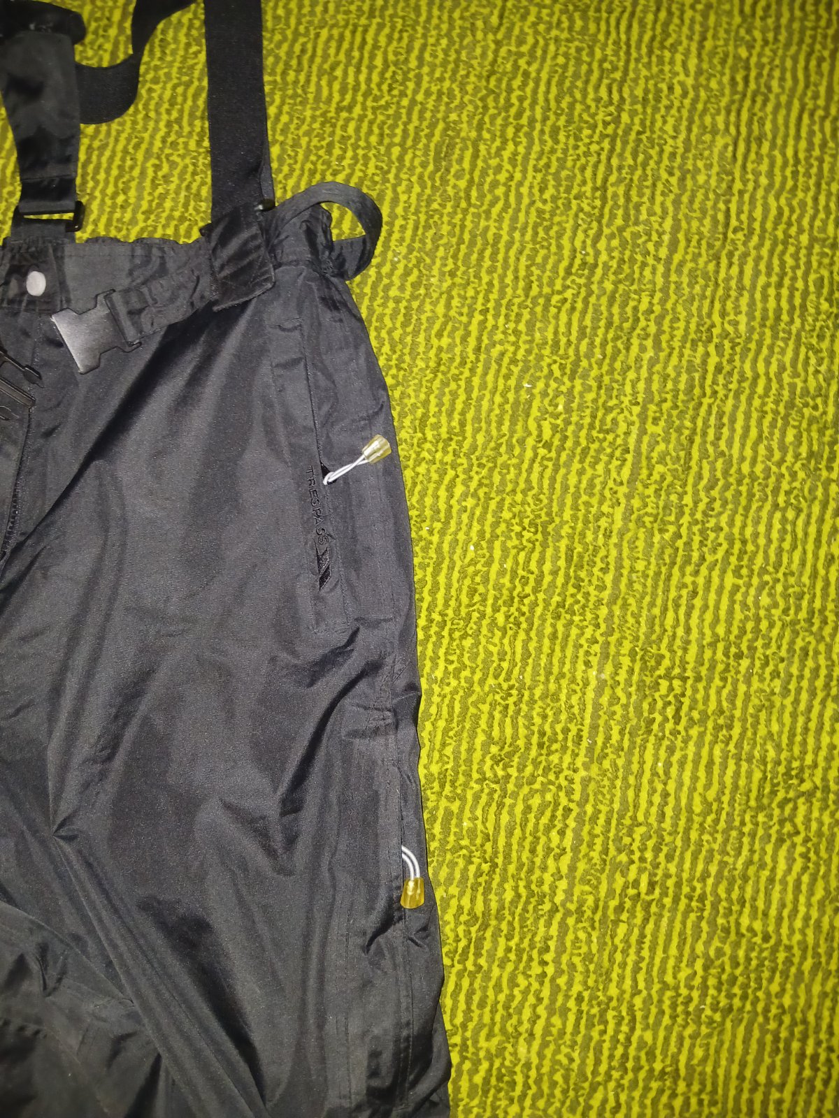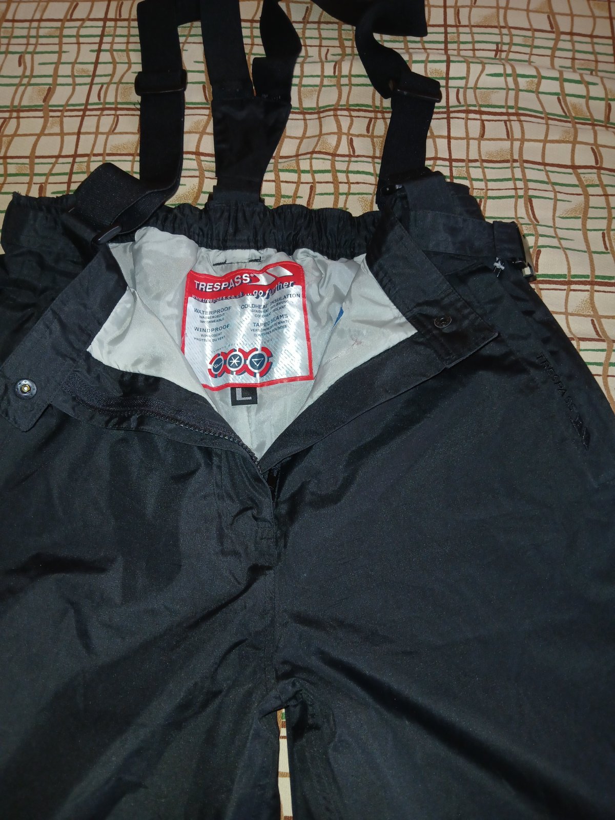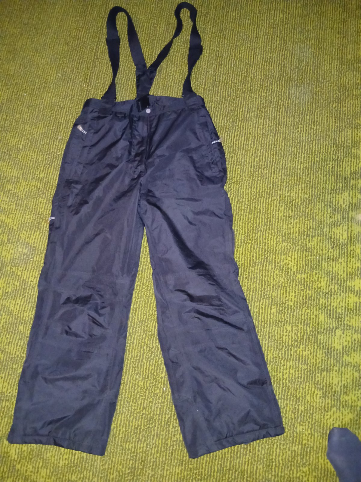 Značkove kvalitné, nepremokavé oteplovaky. Majú funkčné bočné vrecká so zipsom.. V zadnom diele pásu je guma a opasok na reguláciu pasu. Protisnehové návleky. Bočné vetracie otvory. Regulovateľné traky. Vo peknom stave, Nepoškodené.