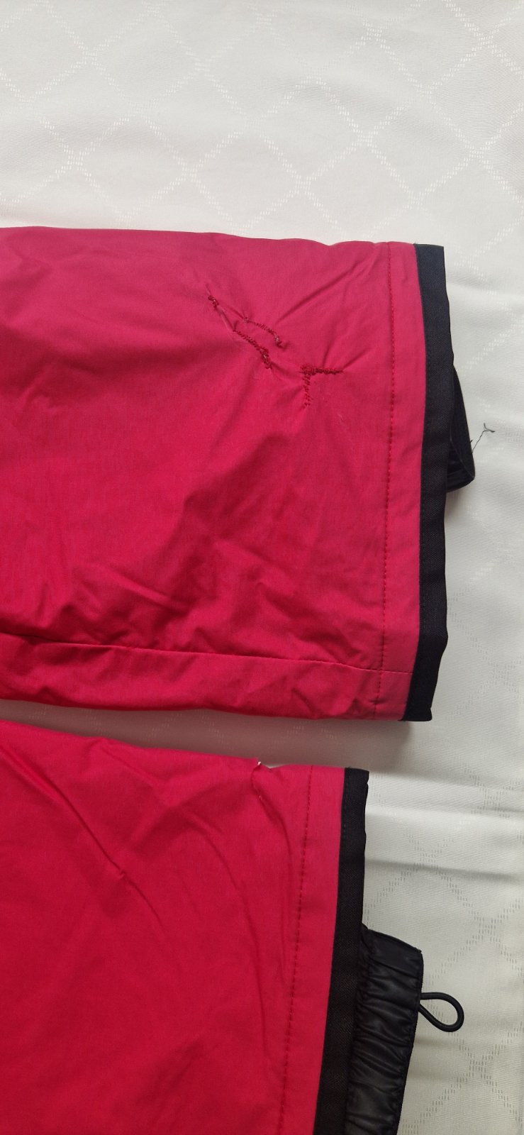 Oteplovačky sú v zachovalom stave, ale s poškodením. Reznuté od lyží- zašité.