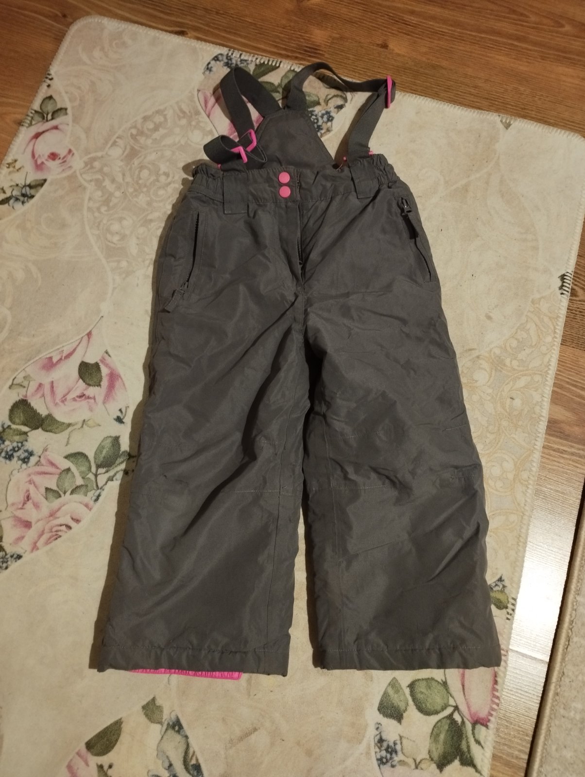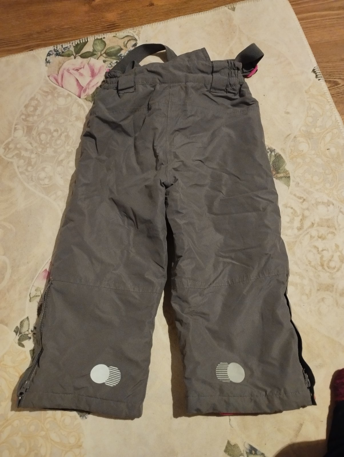 Zachovalé, nepoškodené, teplé, veľmi dobre sadnú. Majú gumičku na spodku, aby sa nedostával sneh do vnútra (našitá), sú rozopínacie, na spodku, na zips, korčľu, na lyžiarku. Dĺžka od pása 66 cm. Vp...