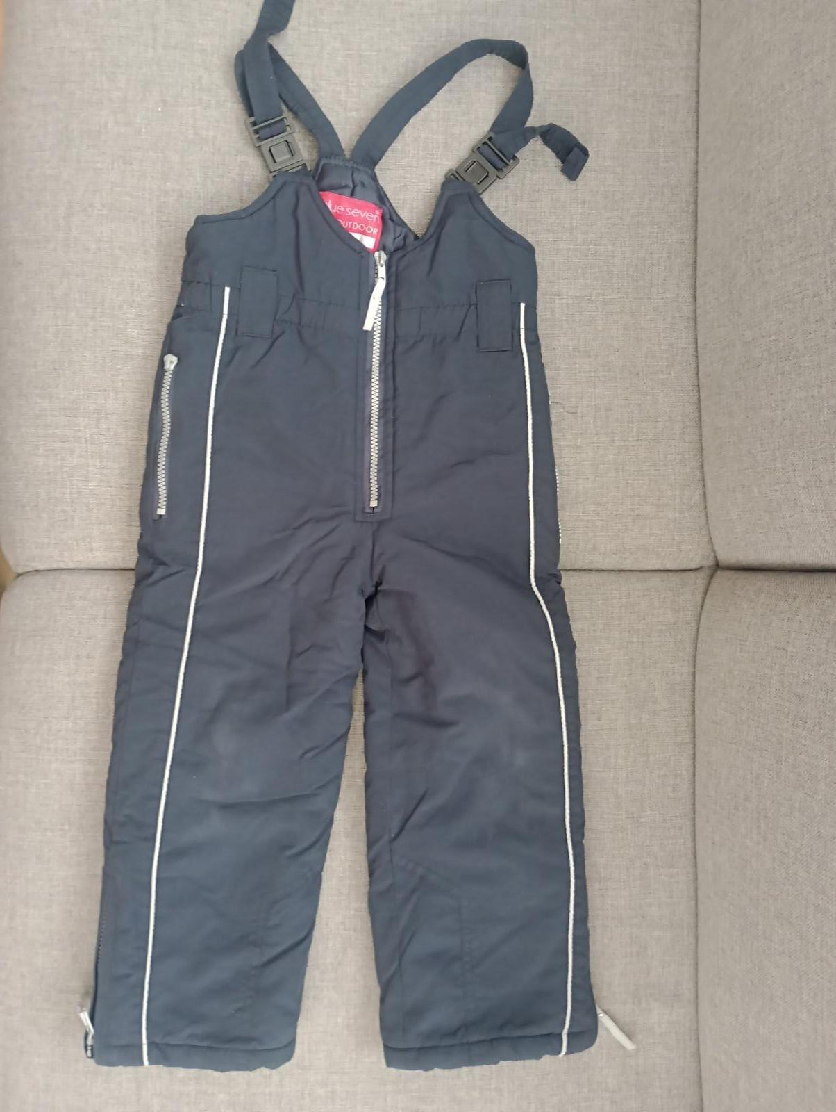 Pekne oteplovacky- nove, s visackami. Traky su posuvne, ale nedaju sa odopnut. Na spodku sa daju rozopnut. Rozmery: celkova dlzka od pasa: 112cm, dlzka nohavice od rozkroku: 79cm, sirka v pase: 50c...
