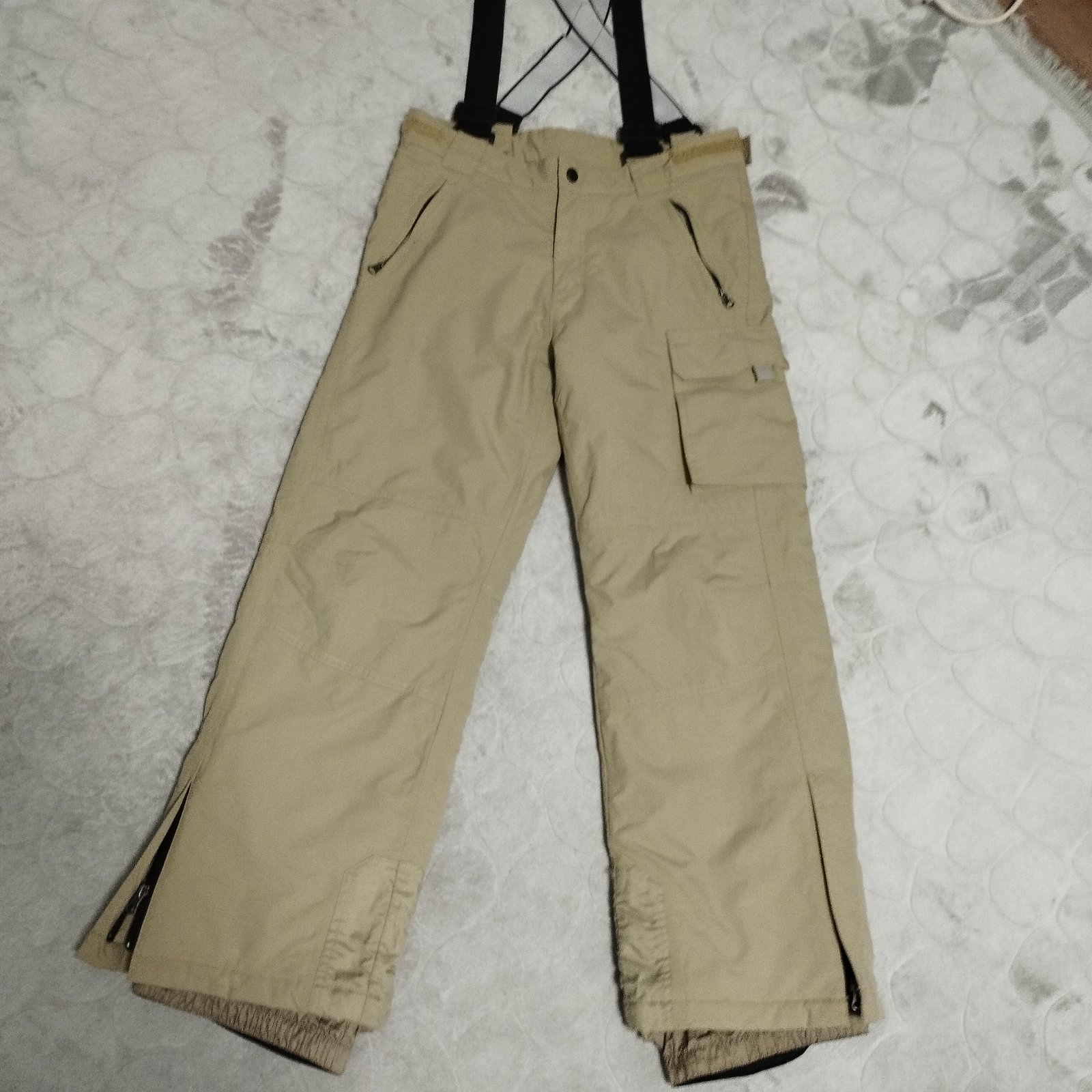 Kvalitné dámske, poprípade dievčenské oteplovačky, béžovej farby v kombinácii s čiernou. vel. 158/164. Vhodné aj na lyžovanie, nepremokajú. Vrch sa dá odopnúť, čiže sa dajú nosiť aj do pása. Sú v d...