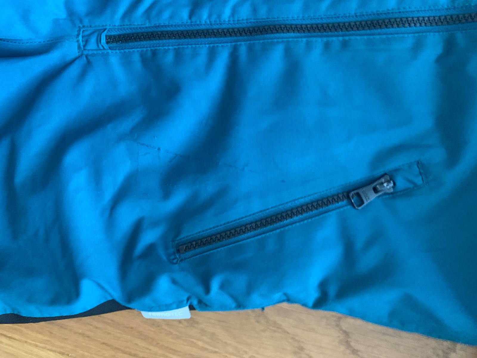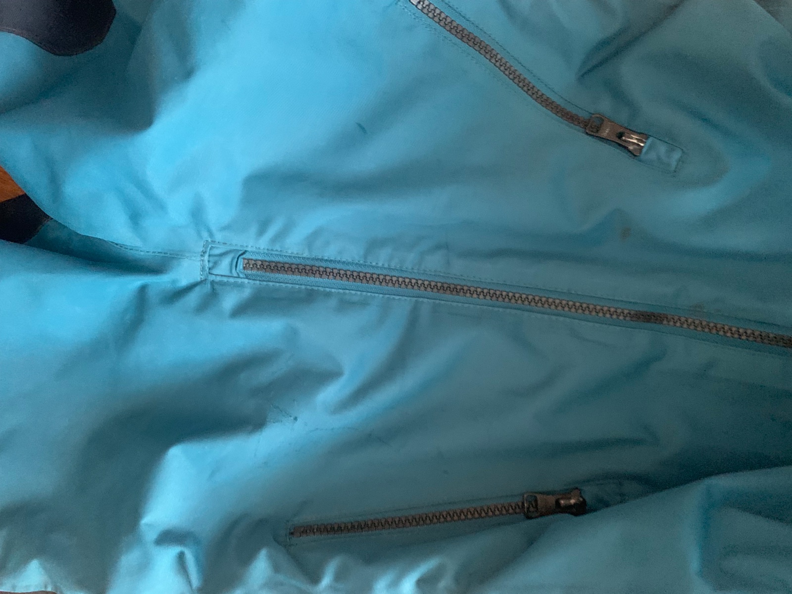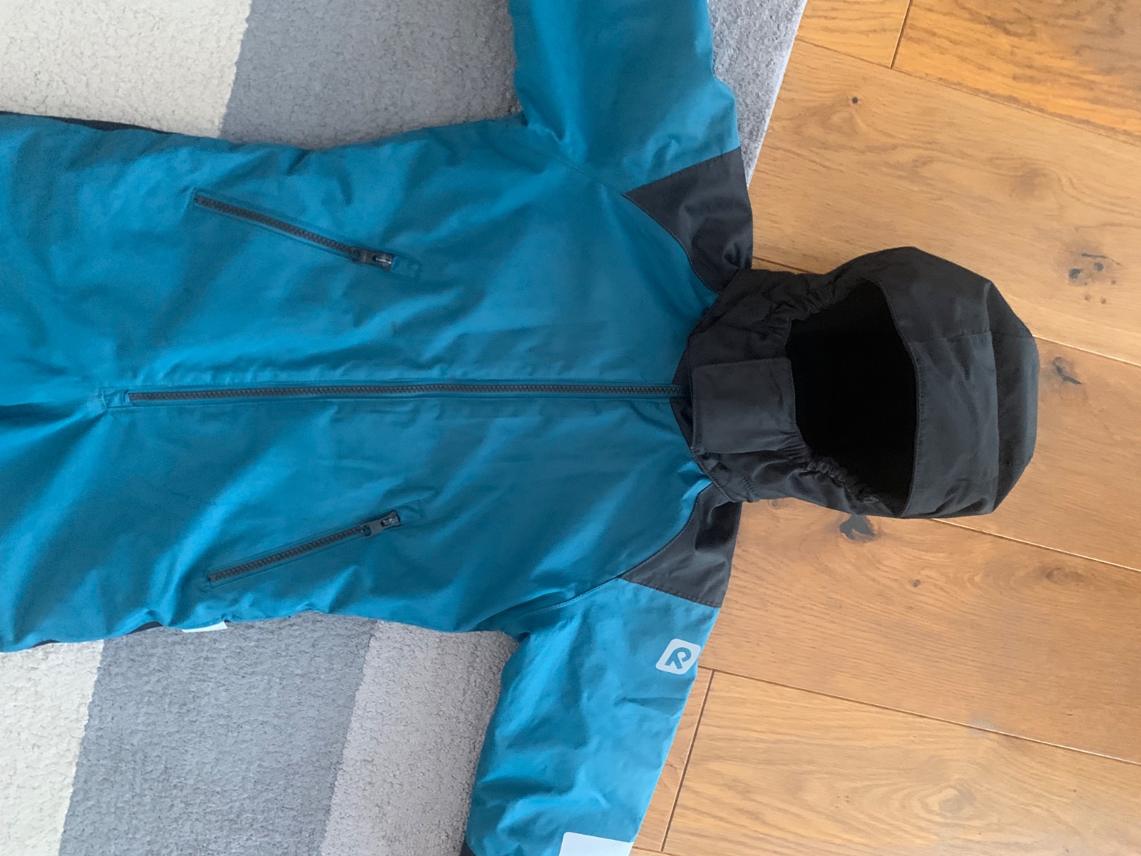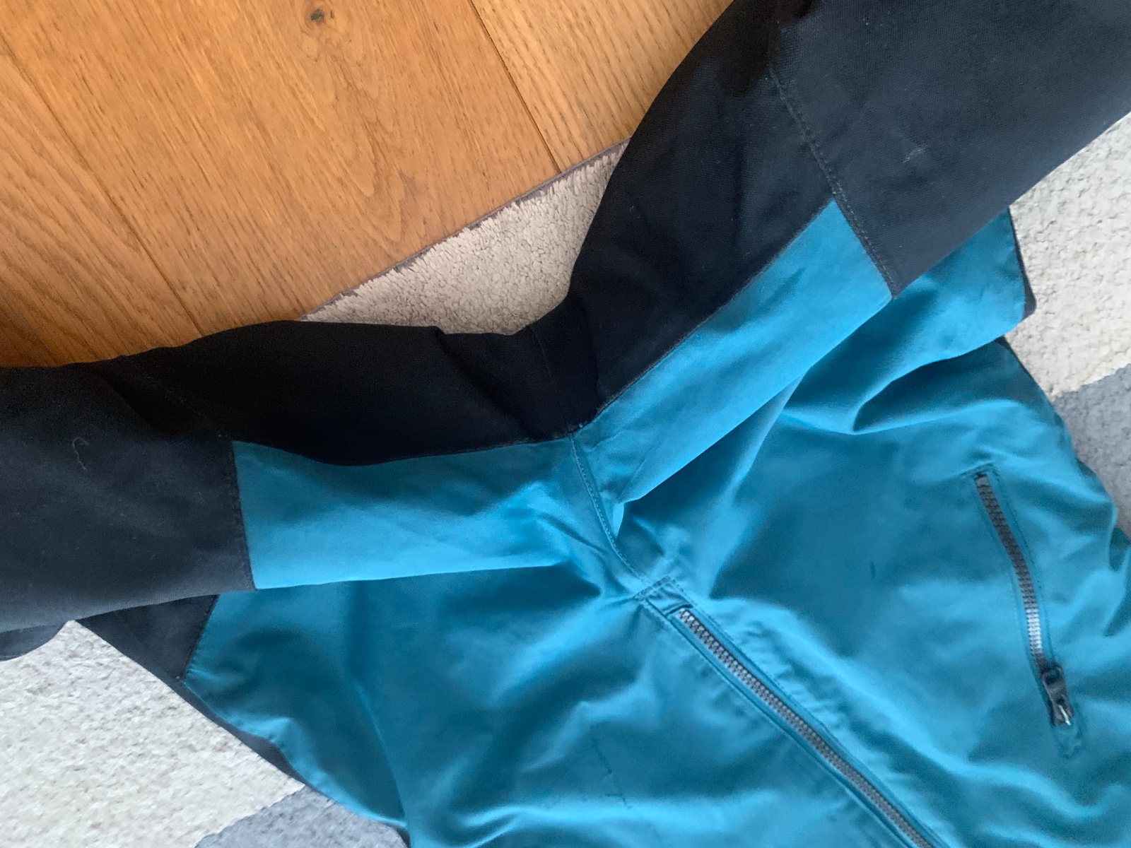 1 fľak, povrchové škrabance od zmrznutého snehu v oblasti vreciek, funkčne je však stále 100% nepremokavá, teplá s teší sa na novú sezónu, sedí na 110 a 116