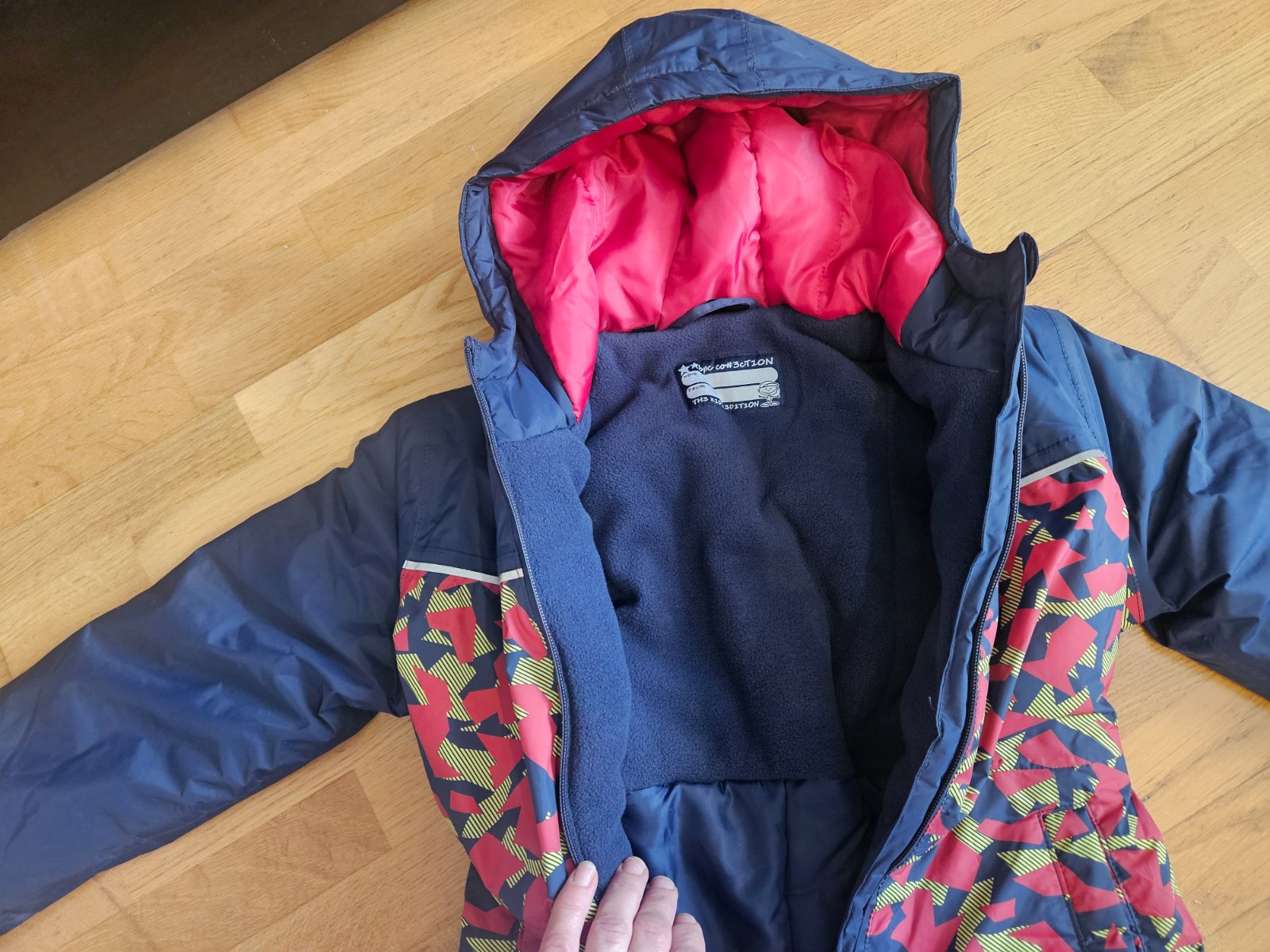 veľmi dobrý stav, dole pri nohách zo zadnej strany opravená v profi krajčírstve Značená ako 122, sedí na 128. Je na viac sezón Miery: celková dĺžka 110 cm, šírka 45 cm, rukáv od krku 55 cm, VD ruká...