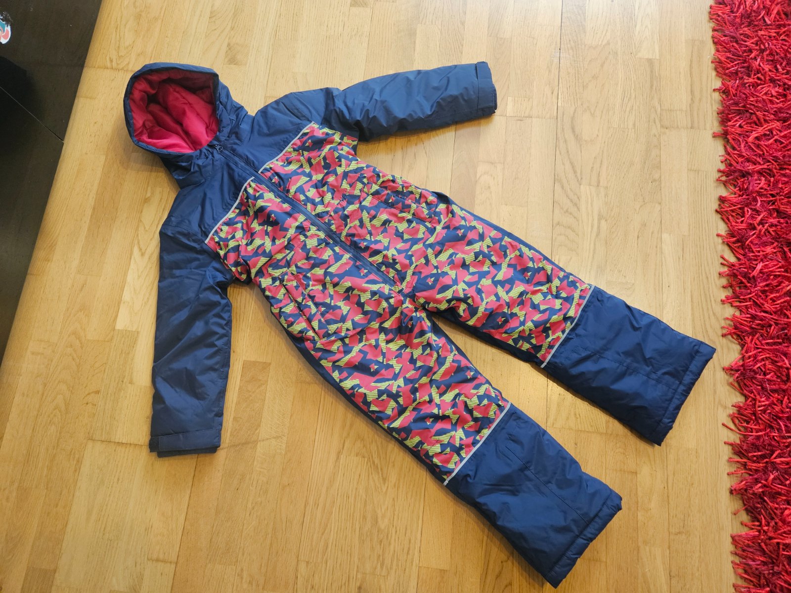 Ponúkam raz oblečený overal, 100 % stav, veľmi teplý, kapucňa nie je odopínateľná, vnútri podšitý flisom, na vek 6-7 rokov. Cena je už vrátane poštovného.