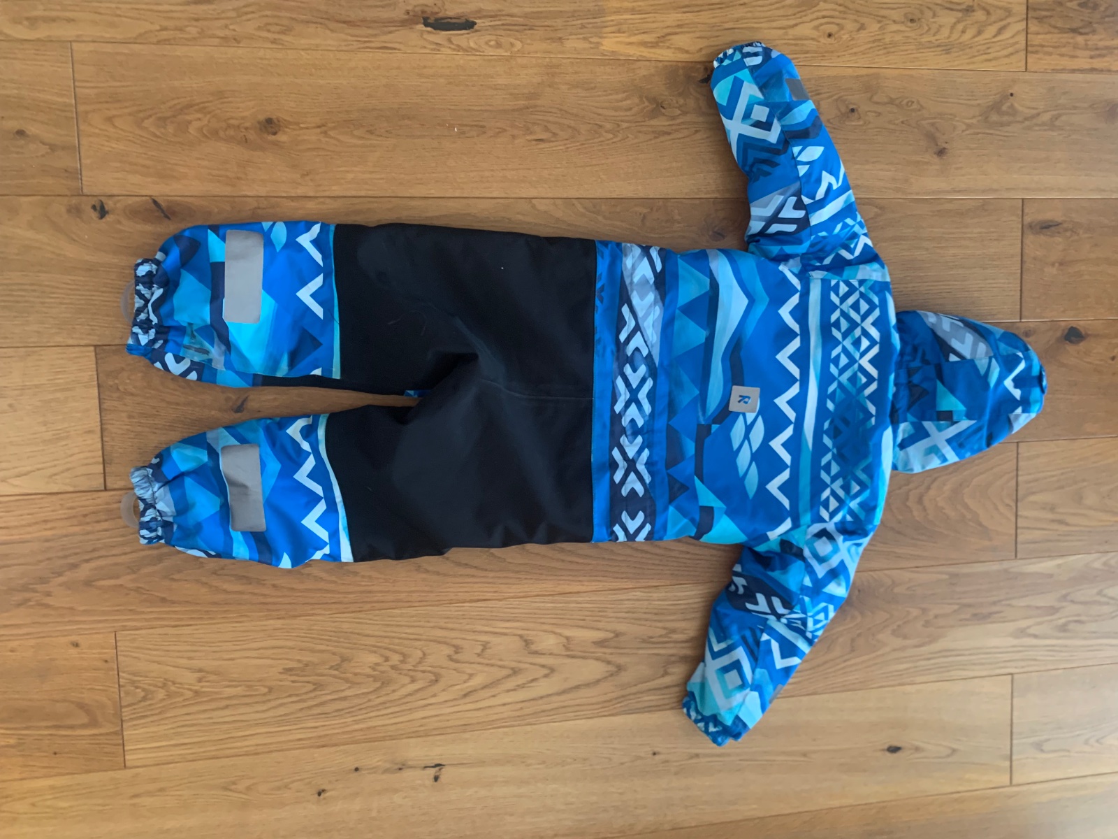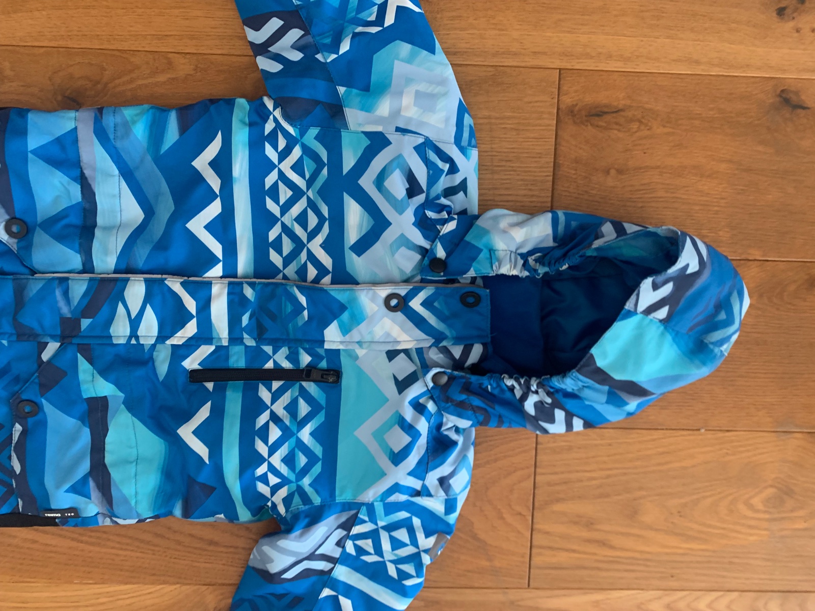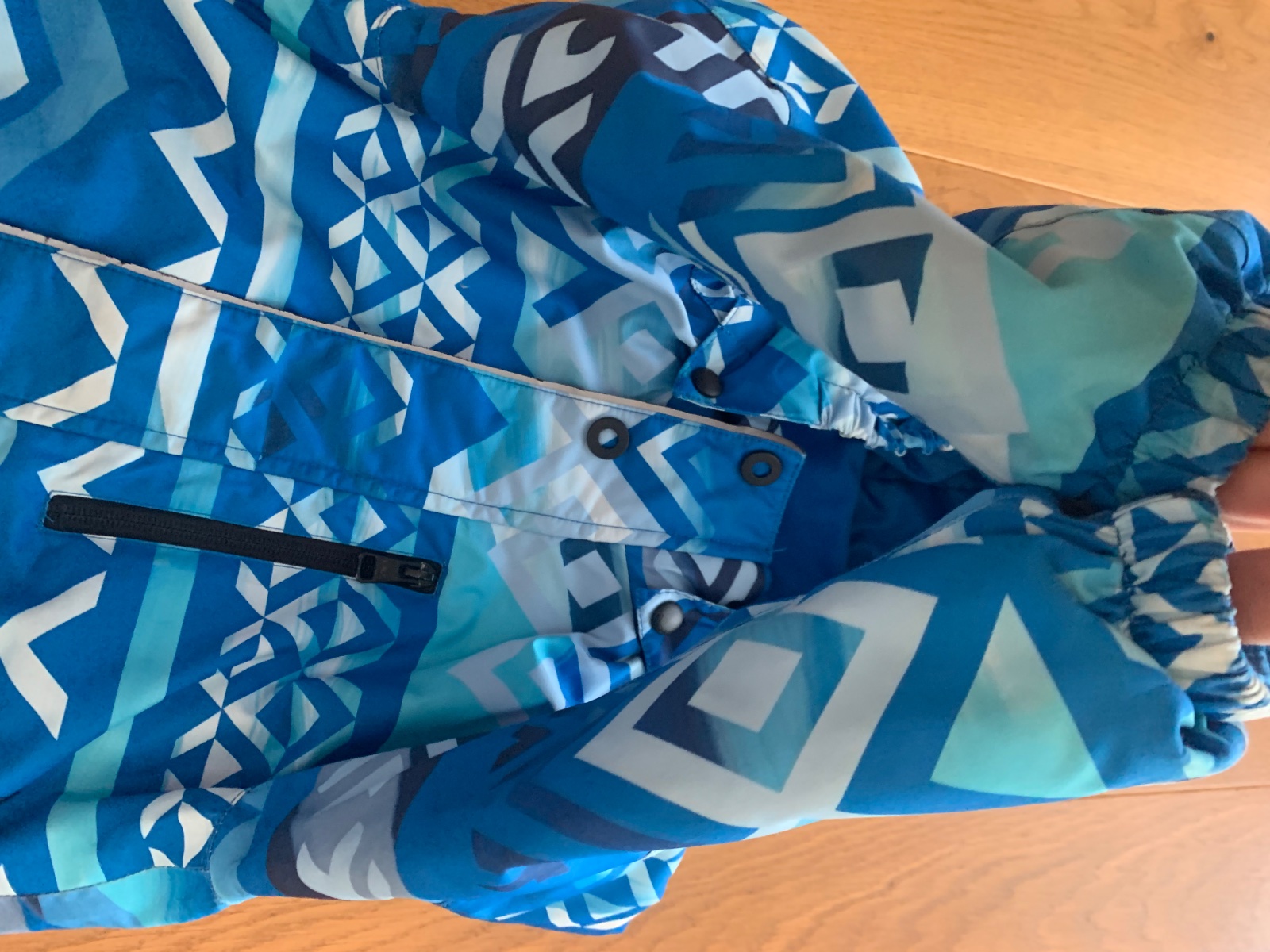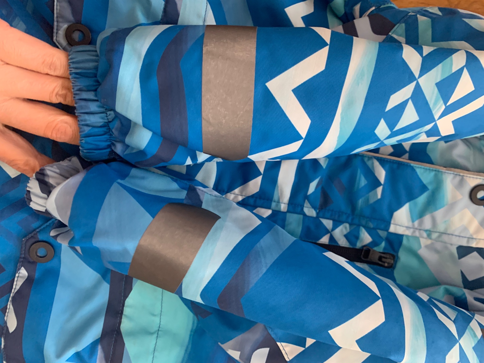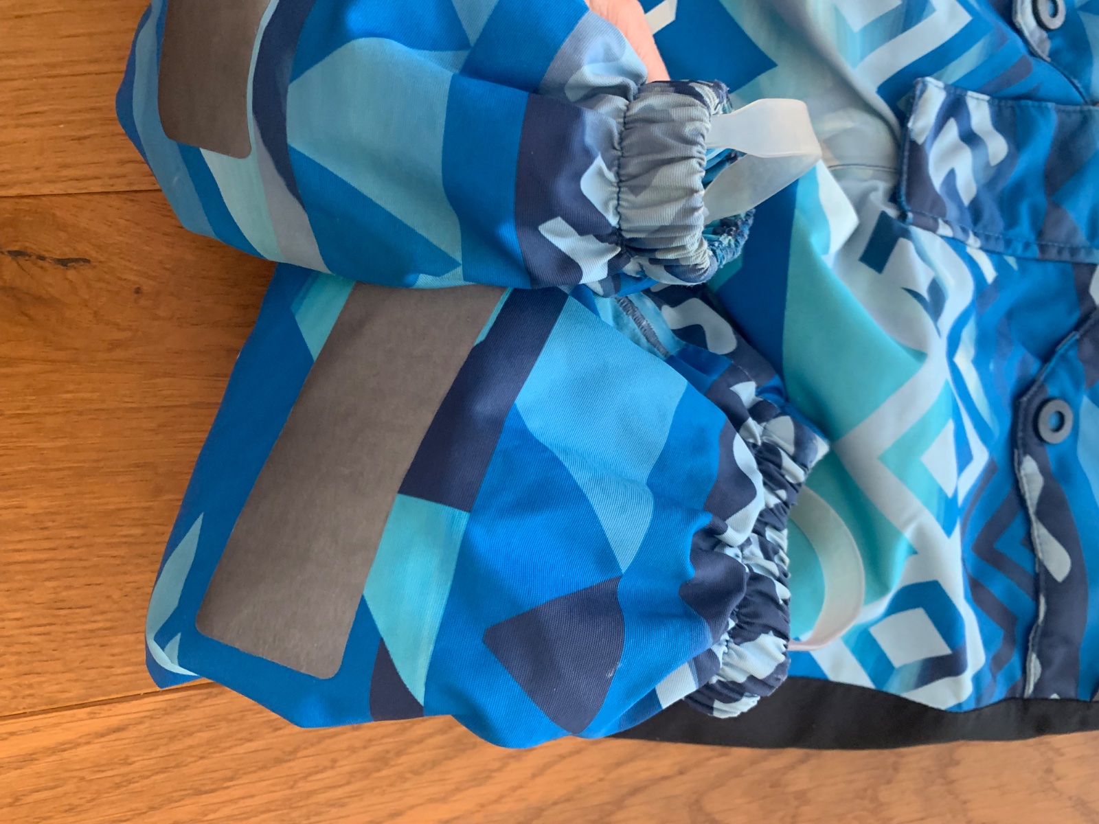 sedí na 104 a 110, Miery: celková dĺžka 92 cm, sirka 42 cm, rukav od kapuce 45 cm, VD rukav 29 cm, VD nohavice 41 cm