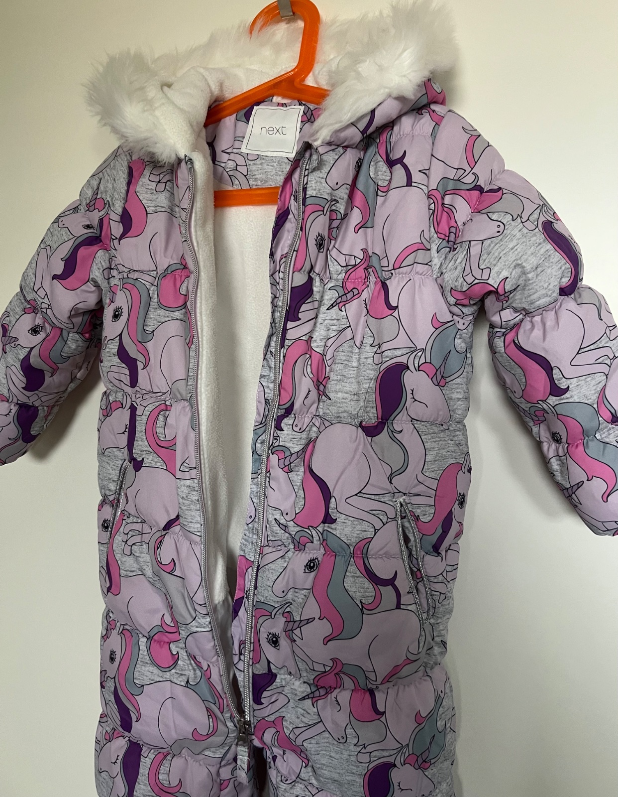 Predám kvalitný Next overal po dcérke - veľkosť 104 t.j. na vek 3-4 rokov. Je teplučký, nepremokavý a vo výbornom stave. Ponúkam za cenu 33 eur už vrátane doporučeného poštovného. Koho budú v snehu zdobiť jednorožce? :-)