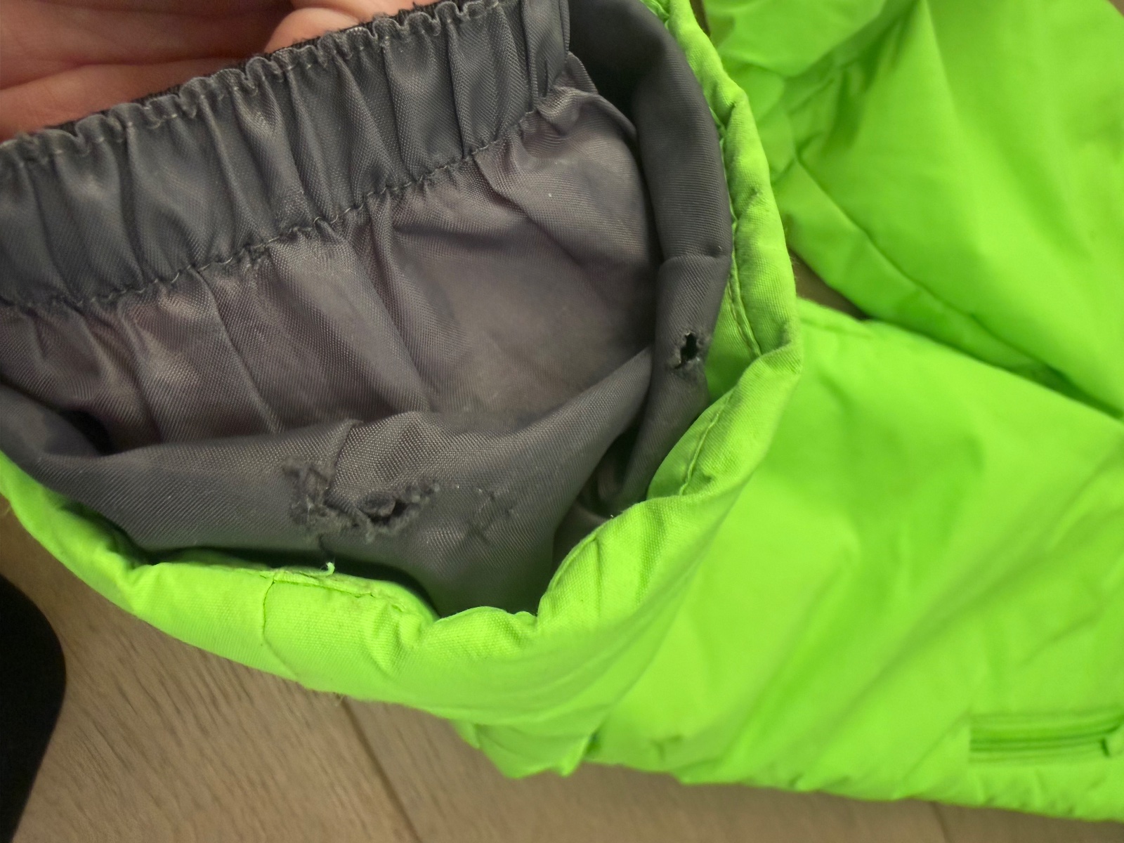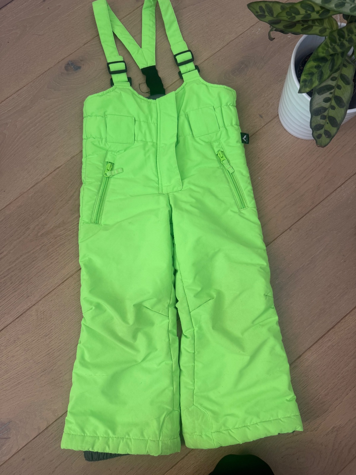 Výrazne zelene oteplovacky, ideálne na svah kde dieťa doslova svieti 🙂
