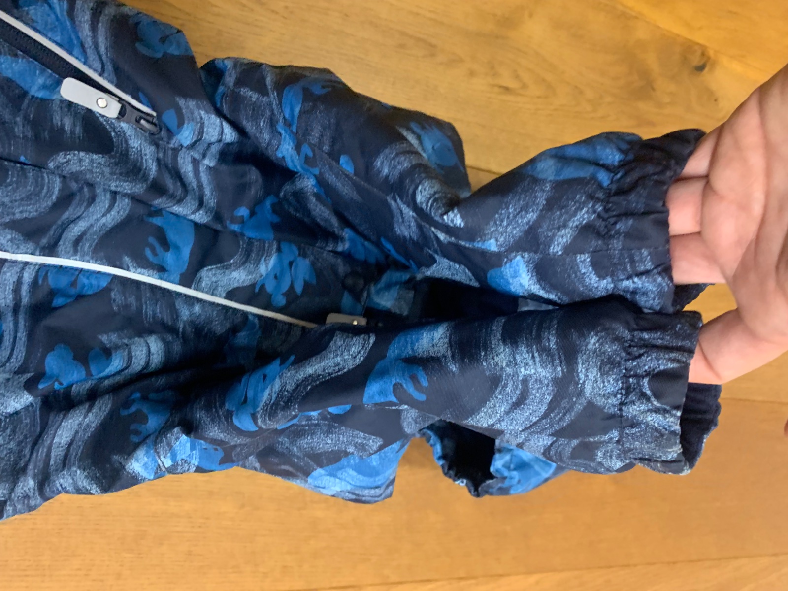 Celková dĺžka 68 cm, šírka 38 cm, rukáv od kapucky 38 cm, VD rukáv 26 cm, VD noha 28 cm, šírka cez plecia 38 cm.
