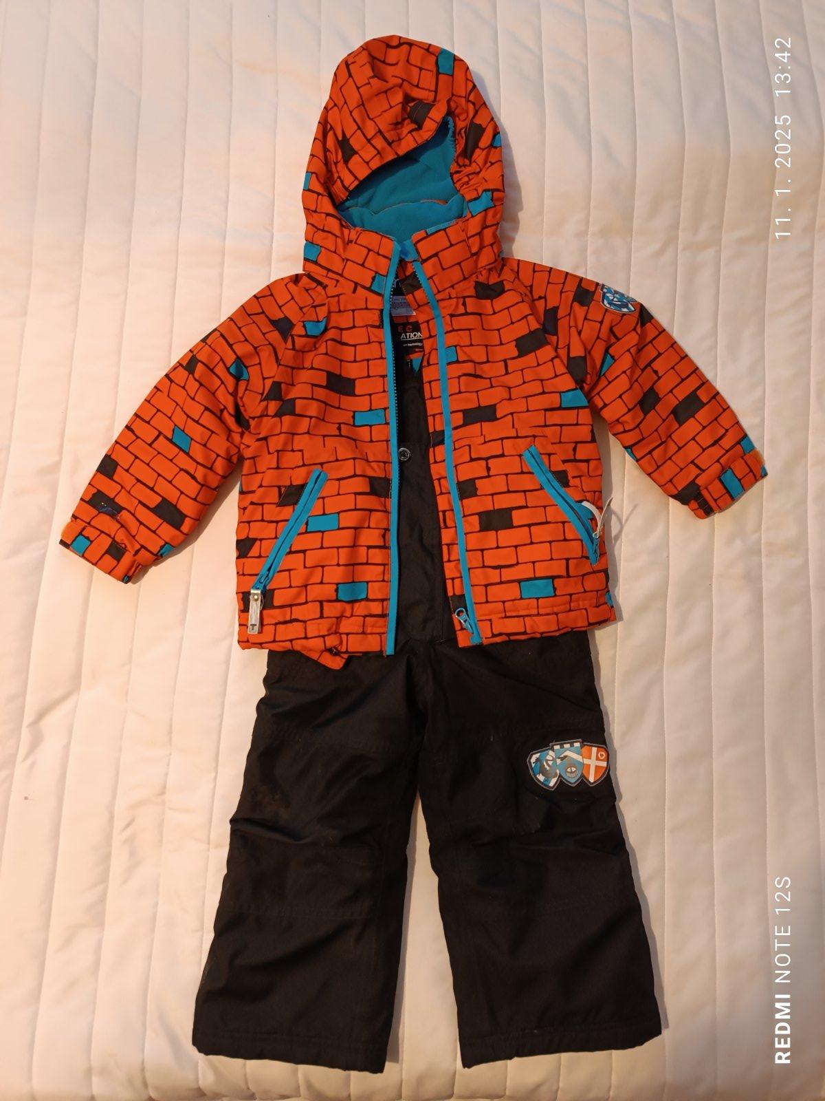 Komplet bol nosený striedmo, na striedačku s iným overalom, je bez akýchkoľvek poškodení, pohodlný , mäkký, nepremokavý, bunda má snežný pás , možnosť stiahnutia na spodu, funkčné vrecká, patent vo vnútri rukáva, aj suchý zips na ňom, kapucňa sa dá odpojiť, oteplovaky sú na zadku spevnené , na nôzkach na spodu majú gumičky proti snehu.