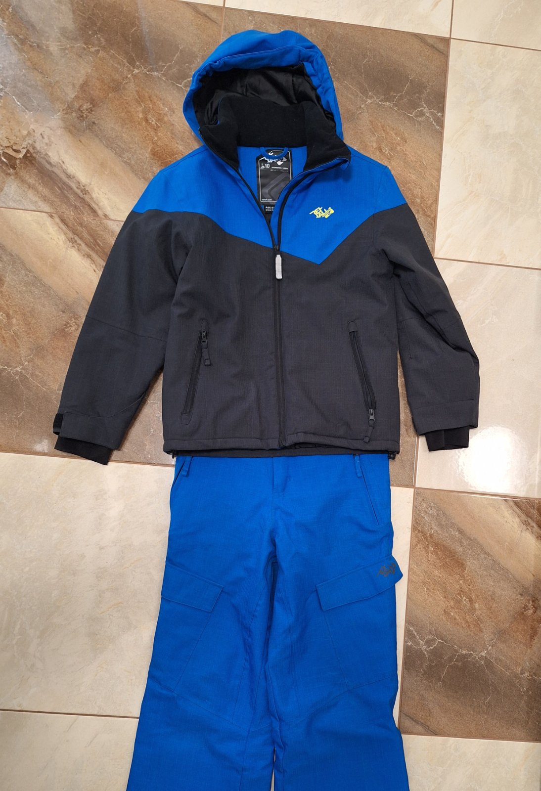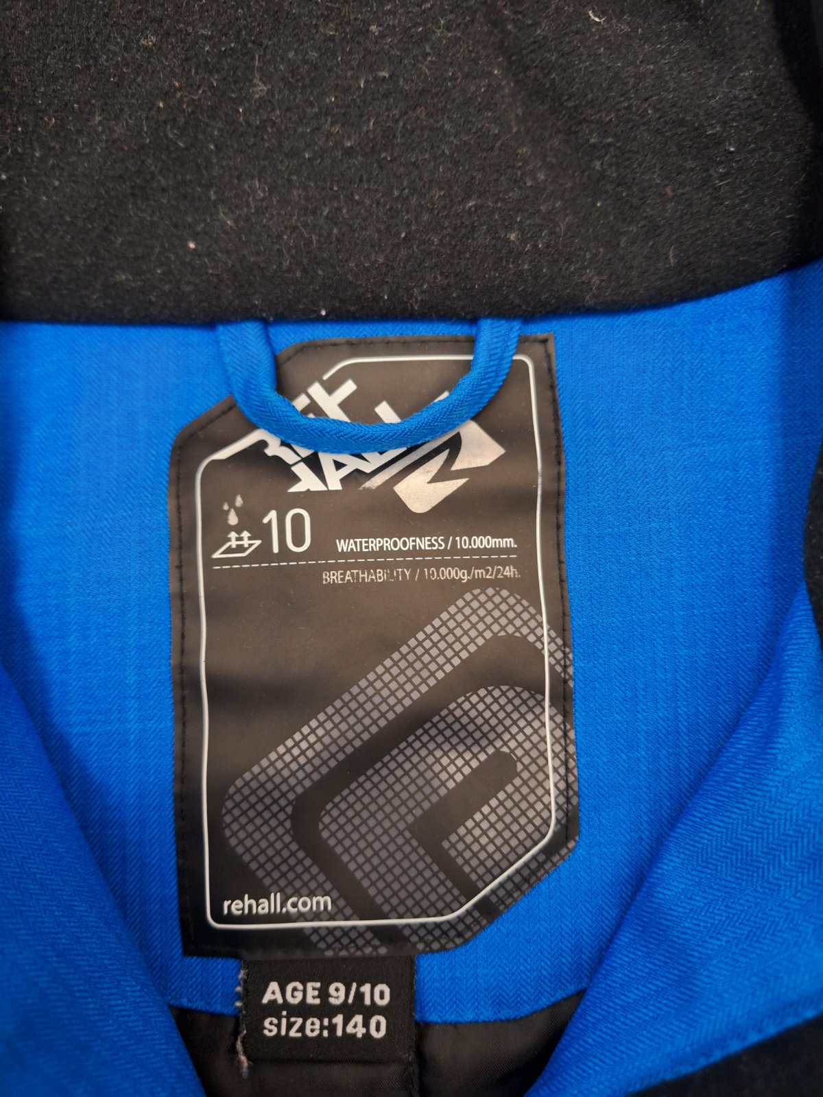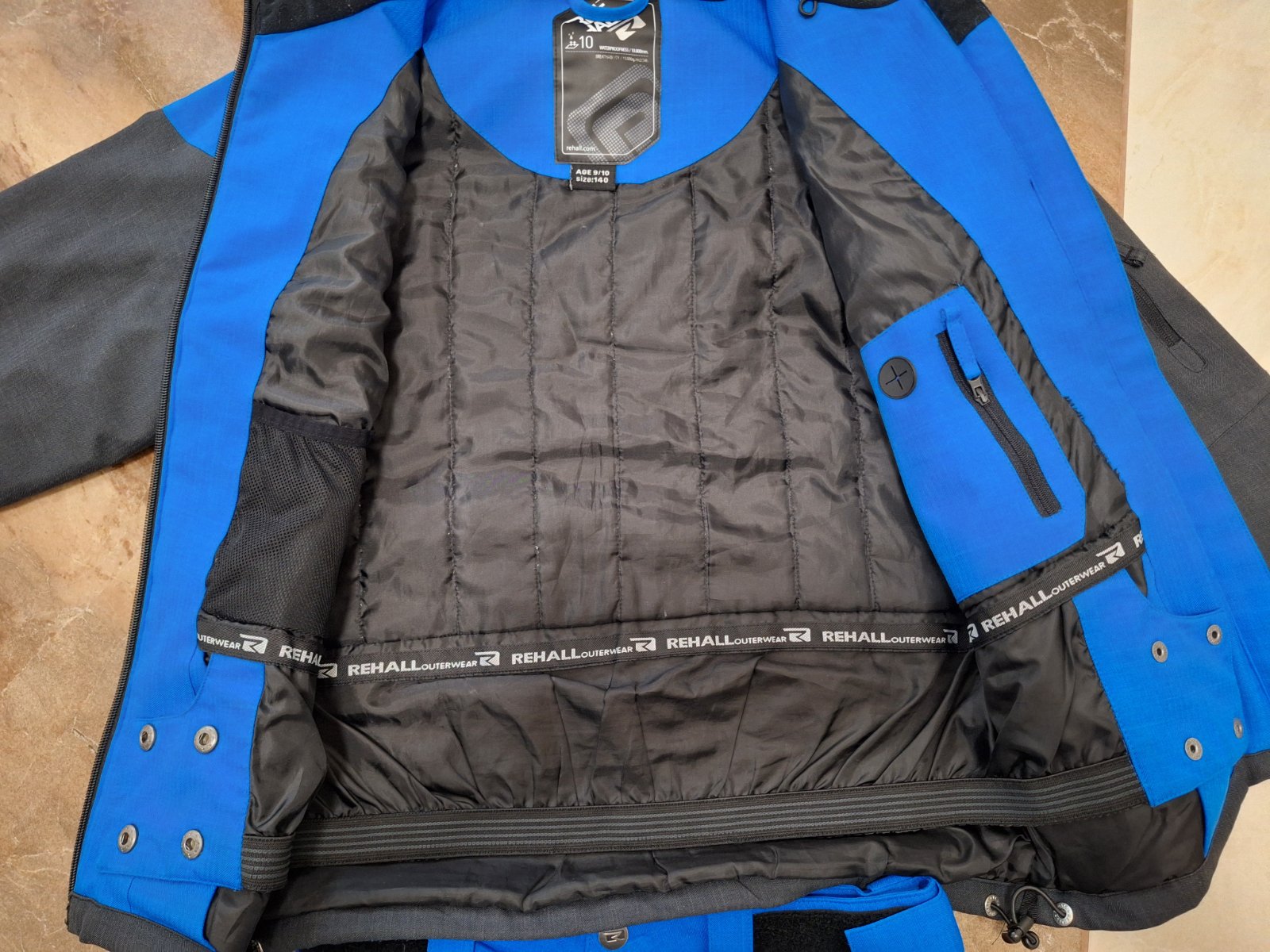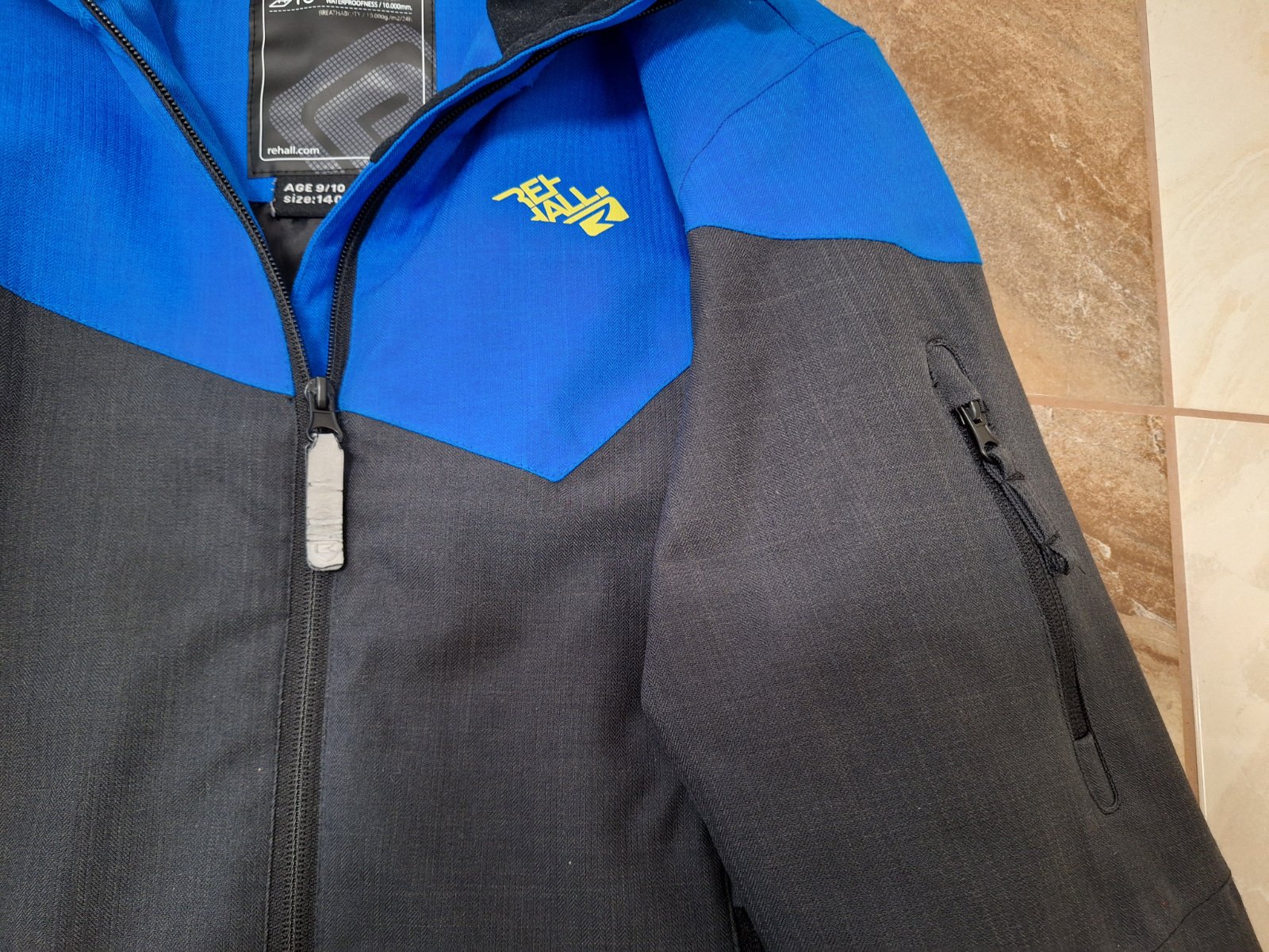 Krásna lyžiarska suprava značky Rehall, veľkosť 140cm. Vodeodolná do 10000, priedušná, bunda má snežný pás a vrecko na skipass. Nohavice majú regulovateľný pás a gumičky proti snehu. Bez poškodení.