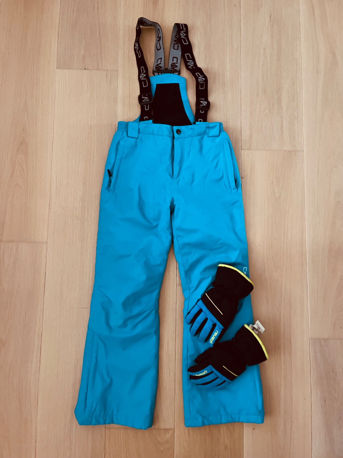 Oteplovacky CMP veľkosť 152 a k tomu pasujúce rukavice Reusch veľkosť junior M v krásnej výraznej modro tyrkysovej farbe. Reálnu Farbu najlepšie vidieť na foto robených vonku na snehu 🙂