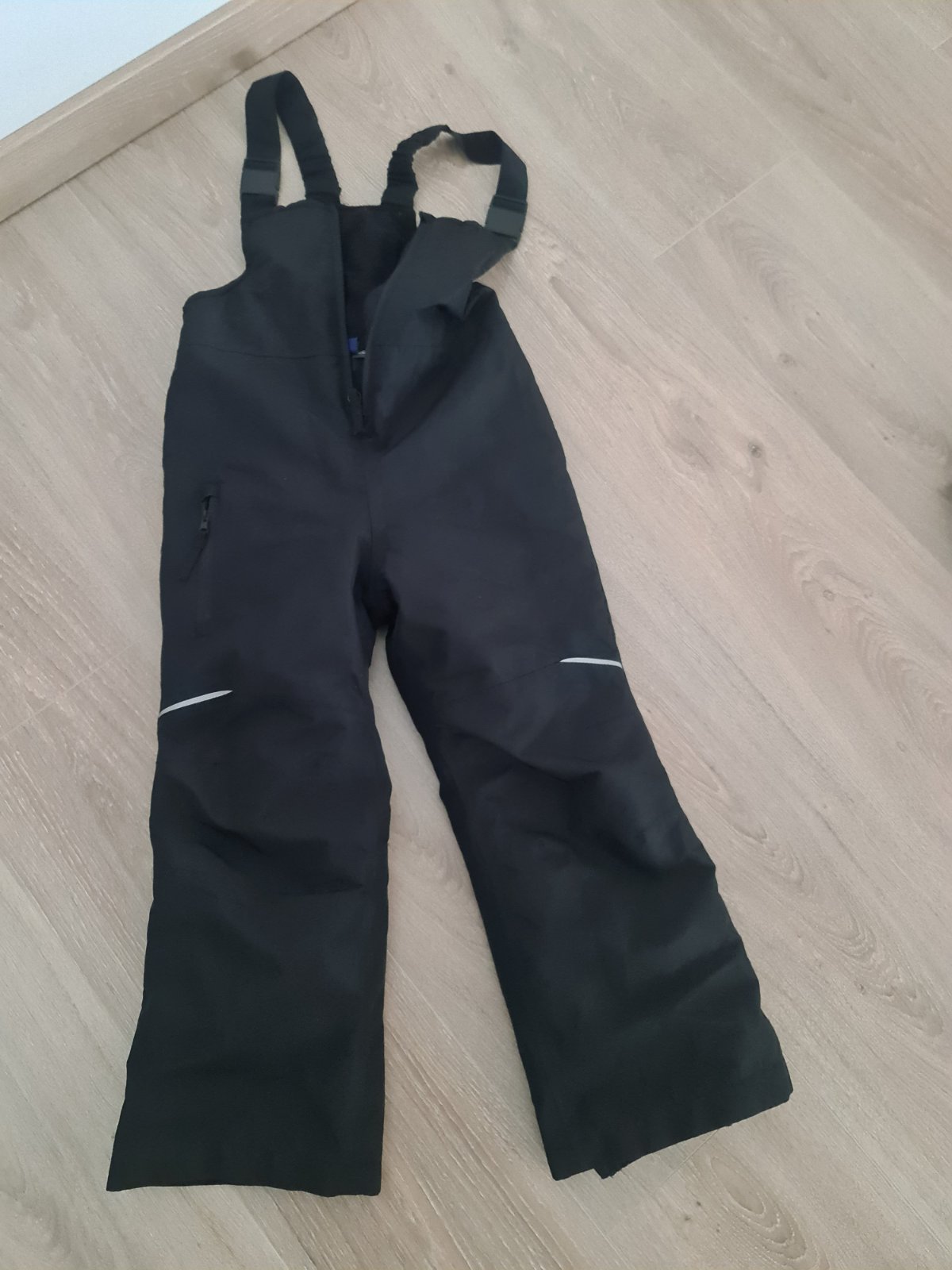 Pekný stav, jemne šuchnuté spodky (pozri foto). Uvedená veľkosť 110/116. Traky sa dajú odopnúť. Dĺžka nohavíc bez trakov 68cm.