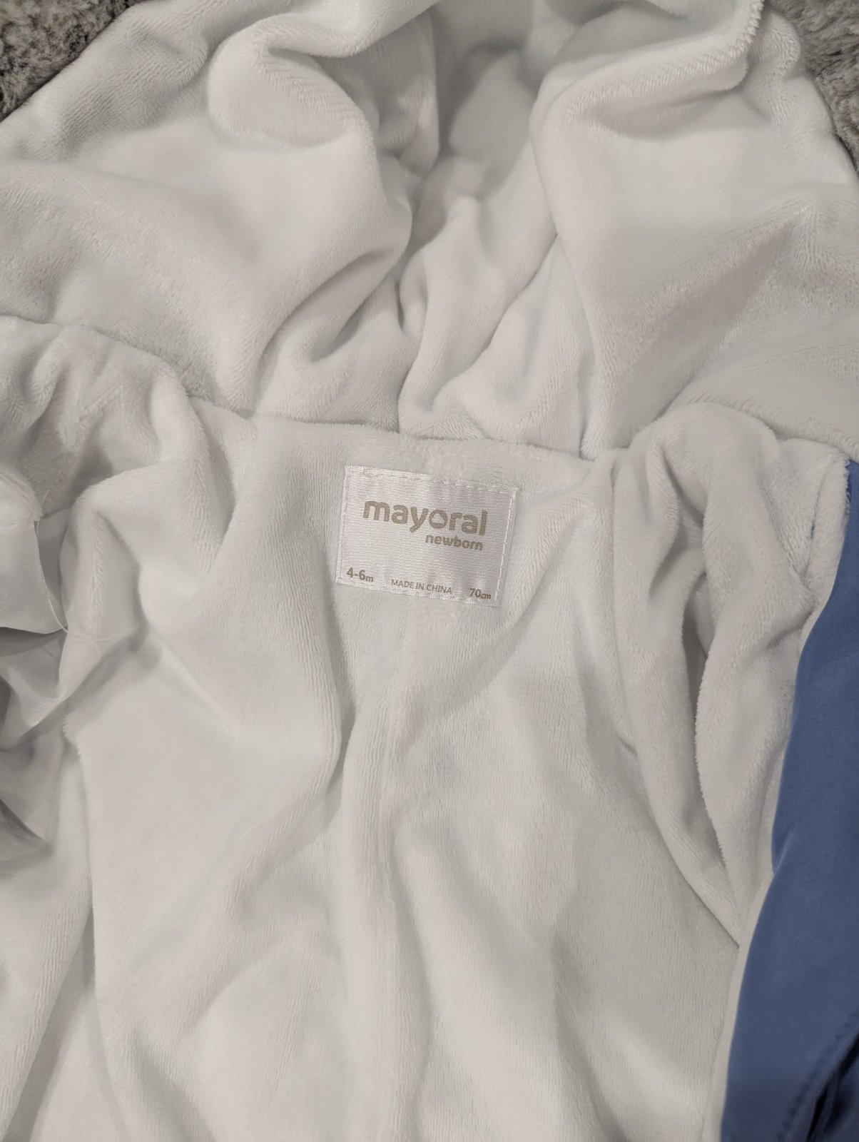 Overal je málo nosený, je ako nový, žiadne fľaky ani diery ani žmolky. Veľkosť 4-6 mesiacov.