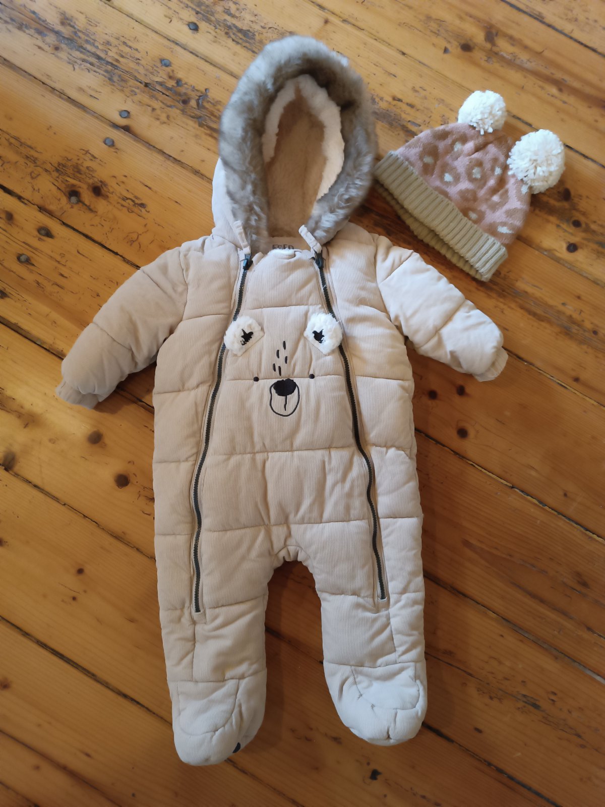 Ako novy, 2x obleceny. Znacka Fred Flo, 3-6 mesiacov. Ciapka cisto nová pridavam ako darcek. K overalu sú aj rukavicky, tiez pridávam.