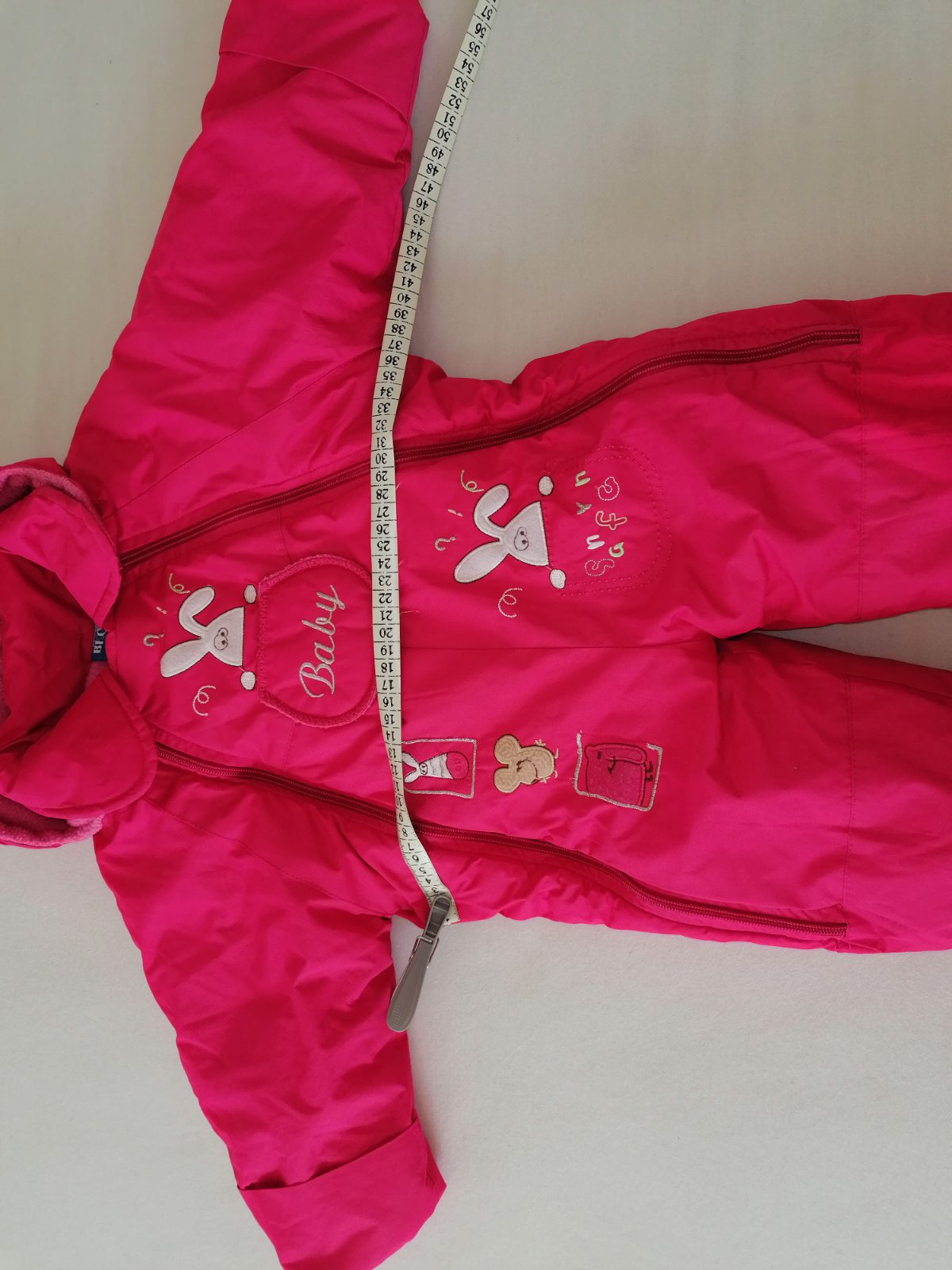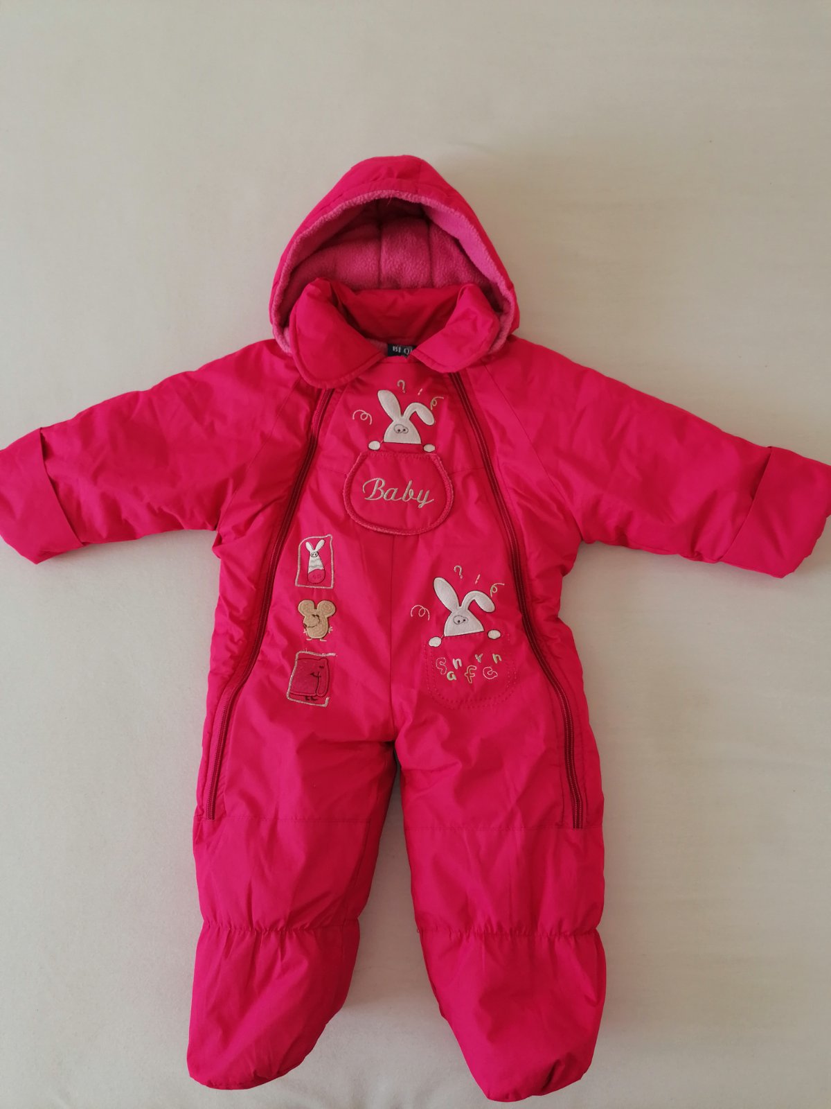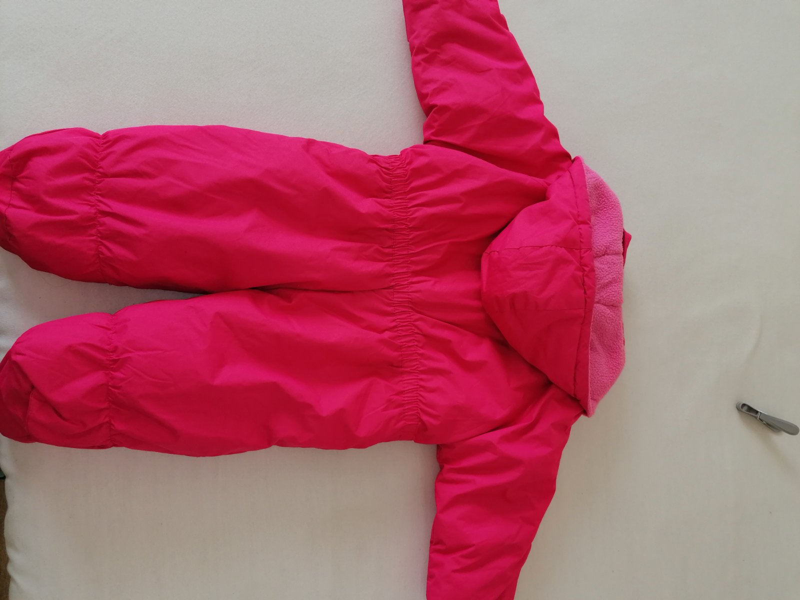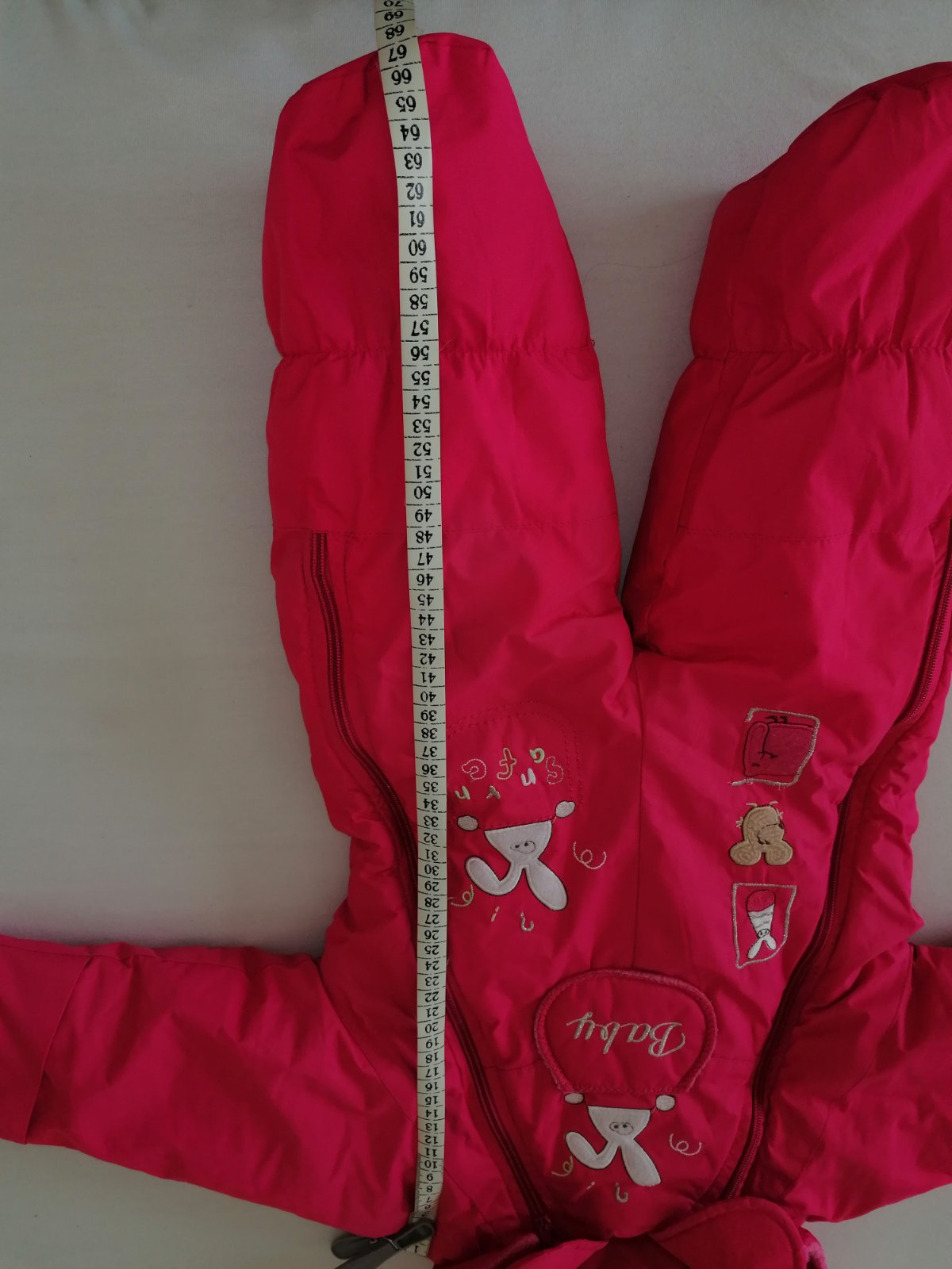 Kvalitný, nepremokavý a teplý overal. Odnímateľná kapuca so šiltom, spevnené kolená a zadok, reflexné pásiky, zateplený zvnútra flísom, na spodku nohavíc gumičky. Mierne vyšúchané medzi kolienkami....