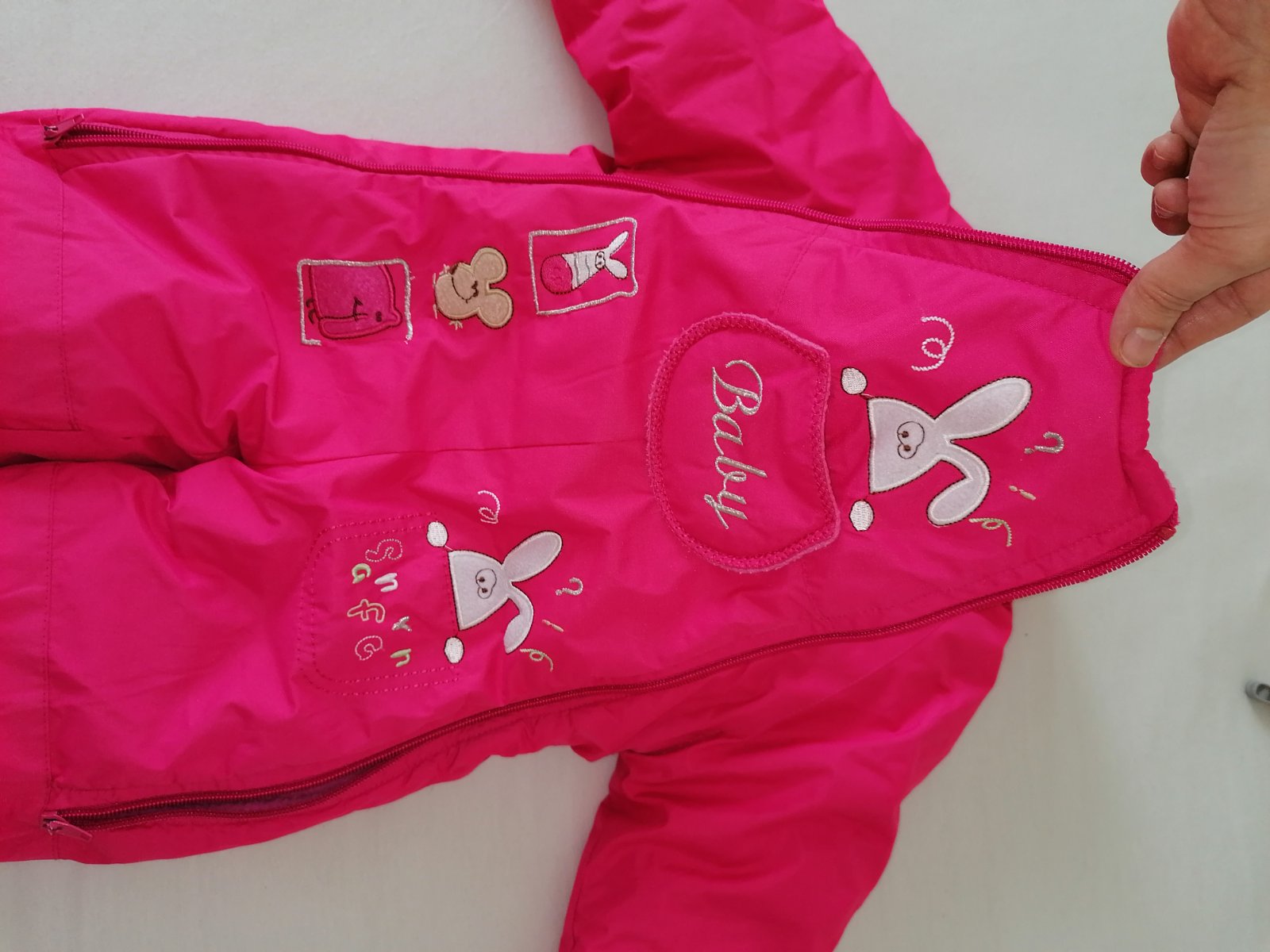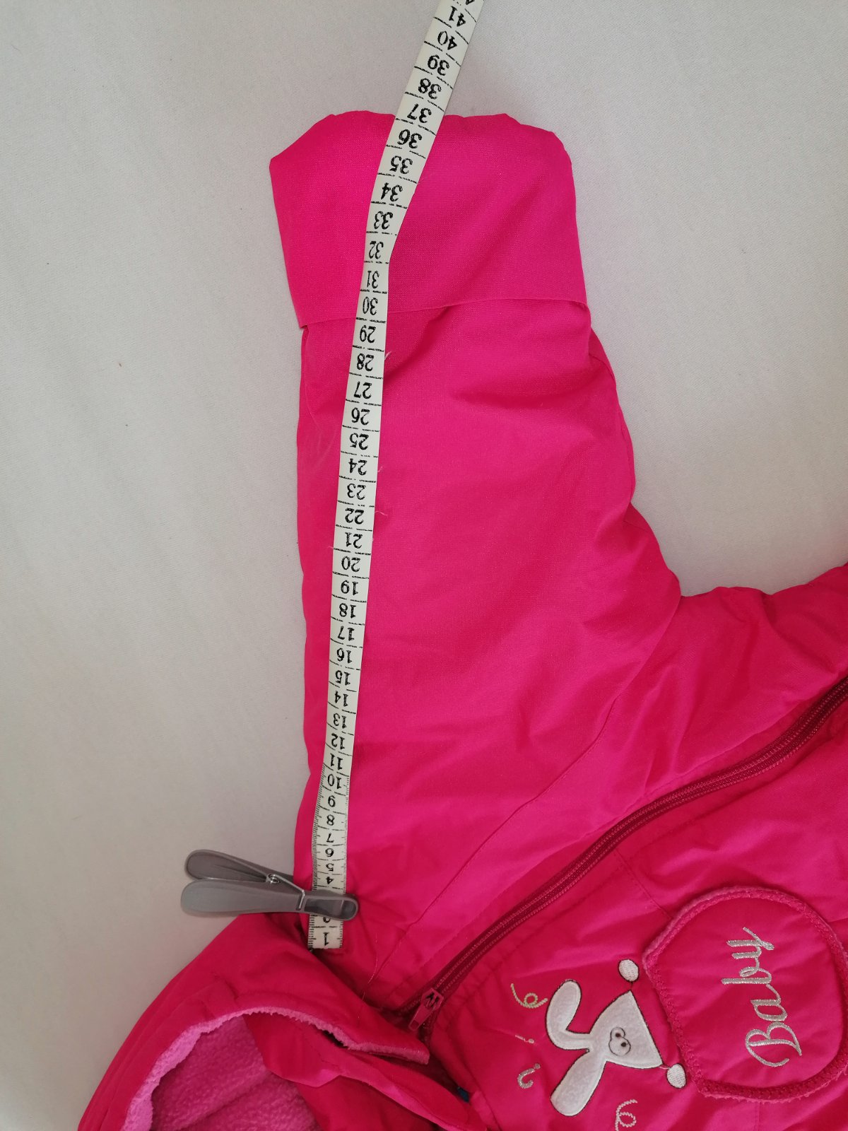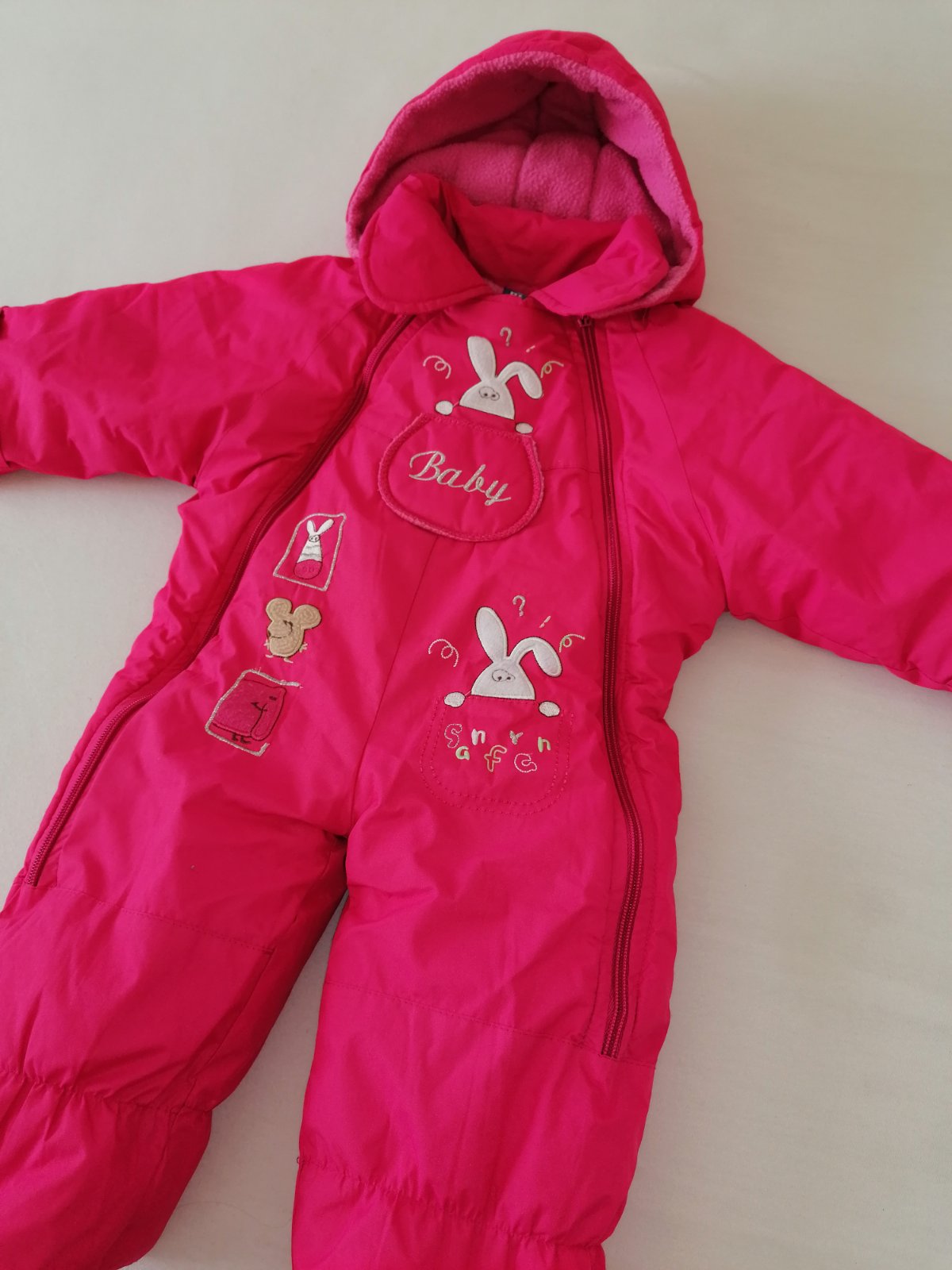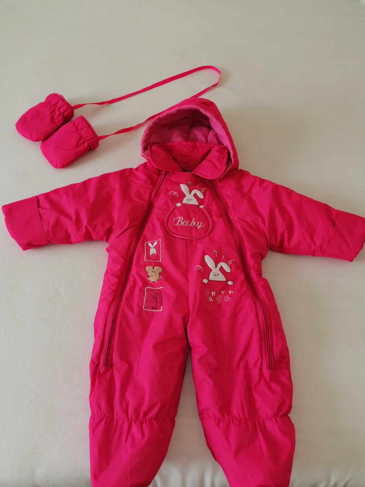 Kvalitný, nepremokavý a teplý overal. Odnímateľná kapuca so šiltom, spevnené kolená a zadok, reflexné pásiky, zateplený zvnútra flísom, na spodku nohavíc gumičky. Mierne vyšúchané medzi kolienkami....