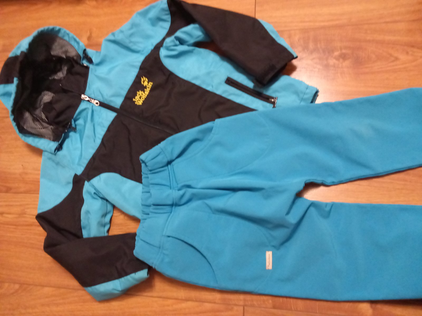 Dobrý nosený stav. Nosené aj na lyžovačku. Bunda veľ.122, nohavice 110/116, ale môj syn je nižší, jemu to takto pasovalo. Bunda má nejaké opotrebenia, viď foto. Odlepujúcsa trošku aj písmenká vpred...