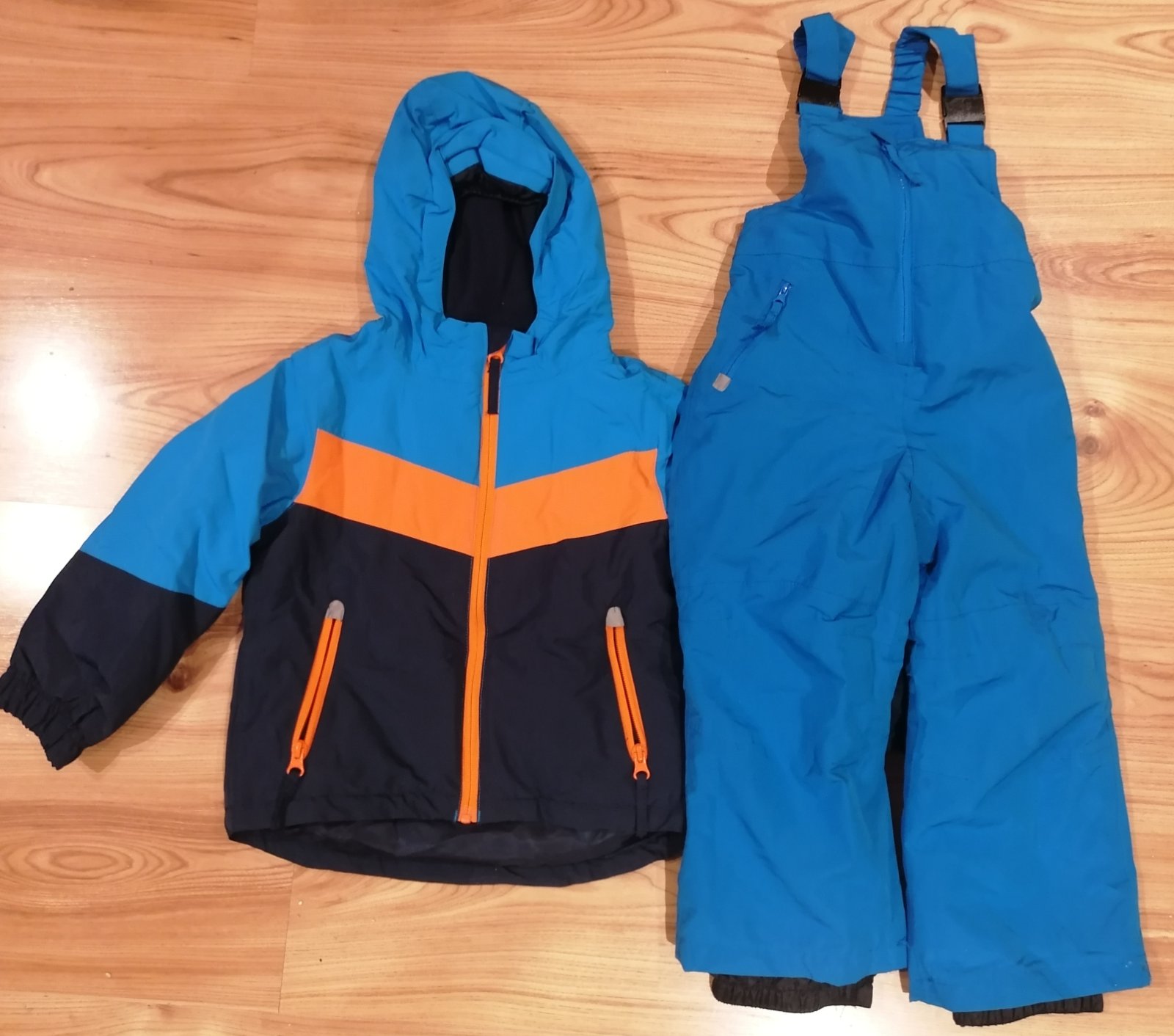Bunda vôbec nenosena, ešte s visačkou. Oteplovaky nosene, ale nie sú vysuchane a pod. Bunda- dĺžka 39 cm, rukáv od pleca 35 cm. Oteplovaky - dĺžka od rozkroku 40 cm , celková dĺžka 77 cm, šírka v ...