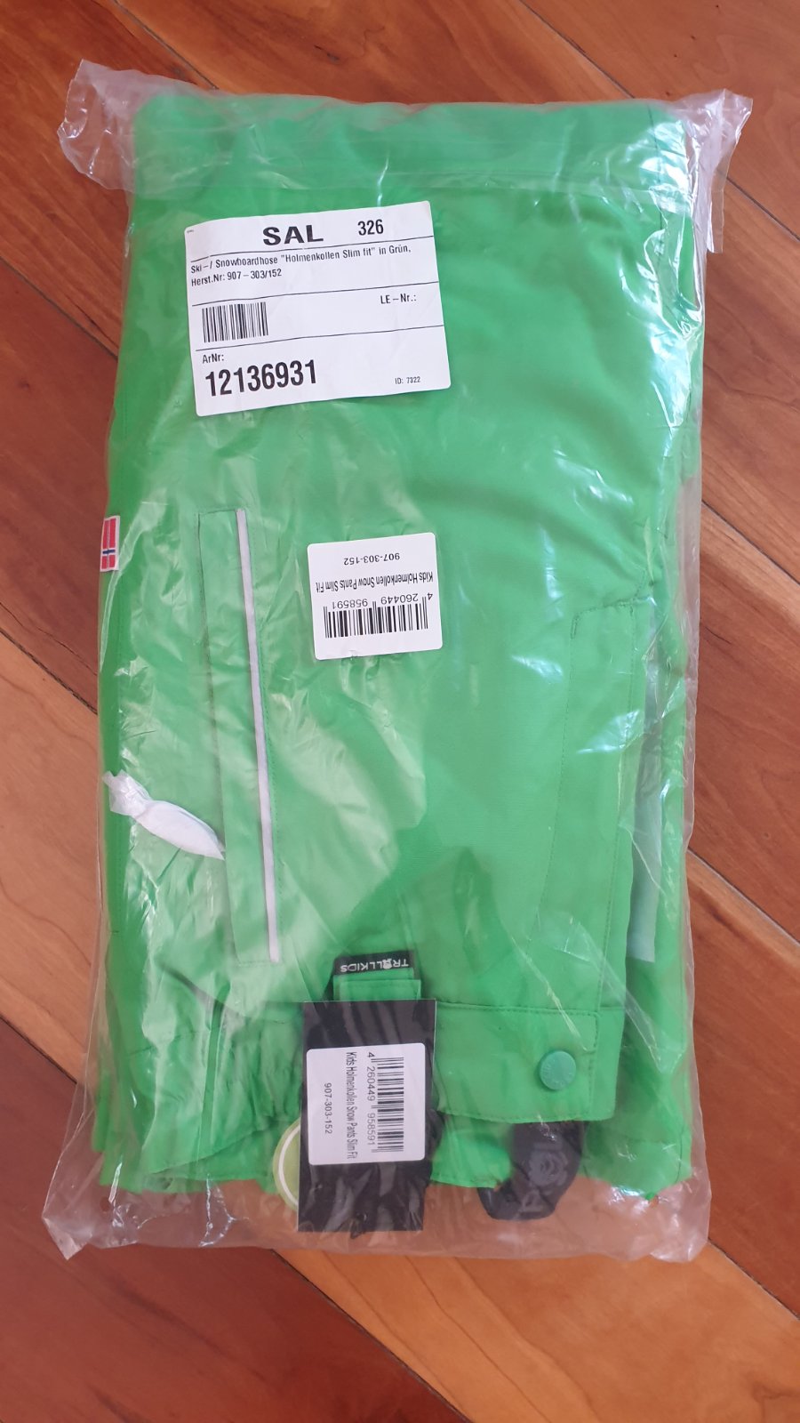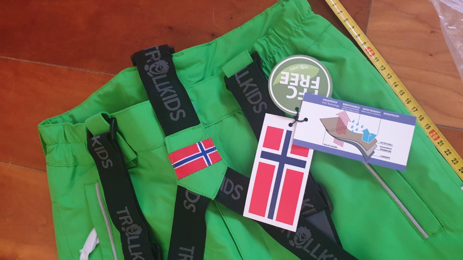 Vodný stĺpec 10.000. Majú reflexné prvky, výrazná zelená farba zlepšuje viditeľnosť lyžiara. V ponuke sú aj tmavomodré nosené za 25 €.