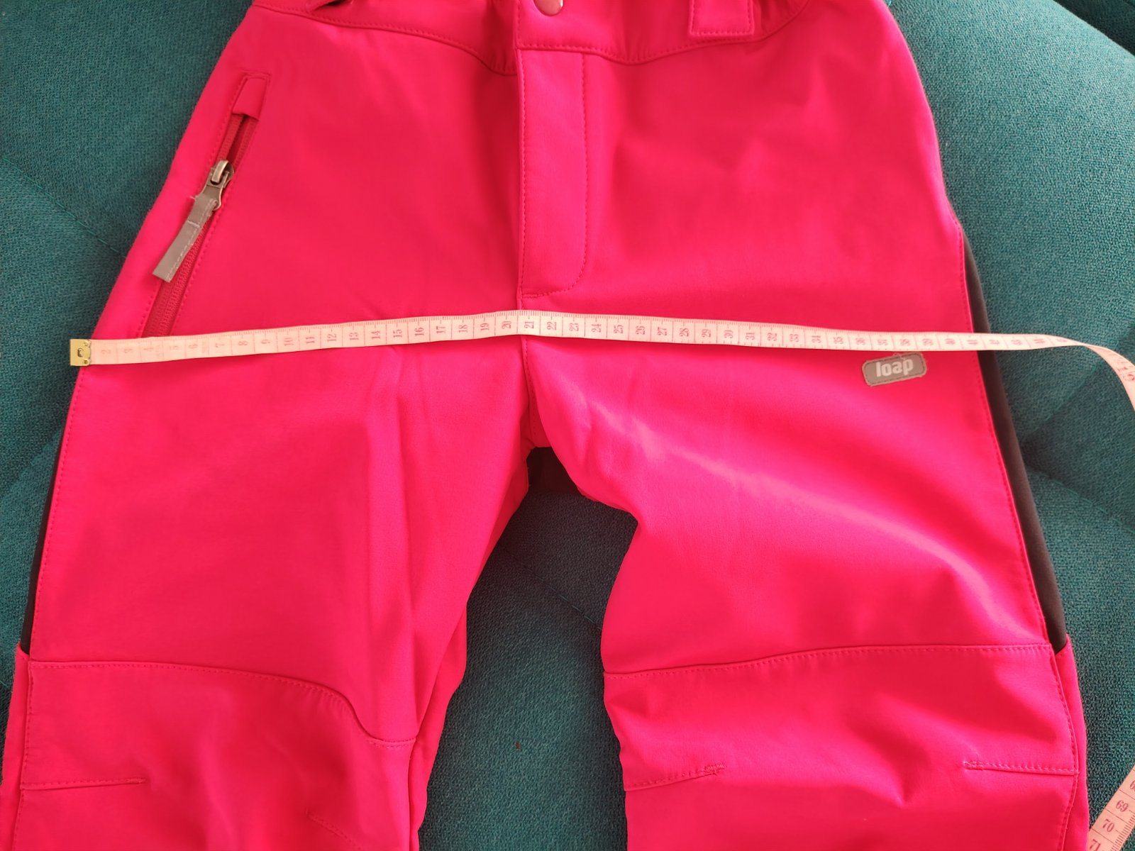 V dobrom stave značka Wedze z Decathlonu. Na štítku je veľkosť 116/124, pás sa dá prispôsobiť a tráky sa dajú odopínať na suché zipsy.. Bočná dĺžka od pása max. 78 cm, vnútorná 50 cm....dĺžka nohav...