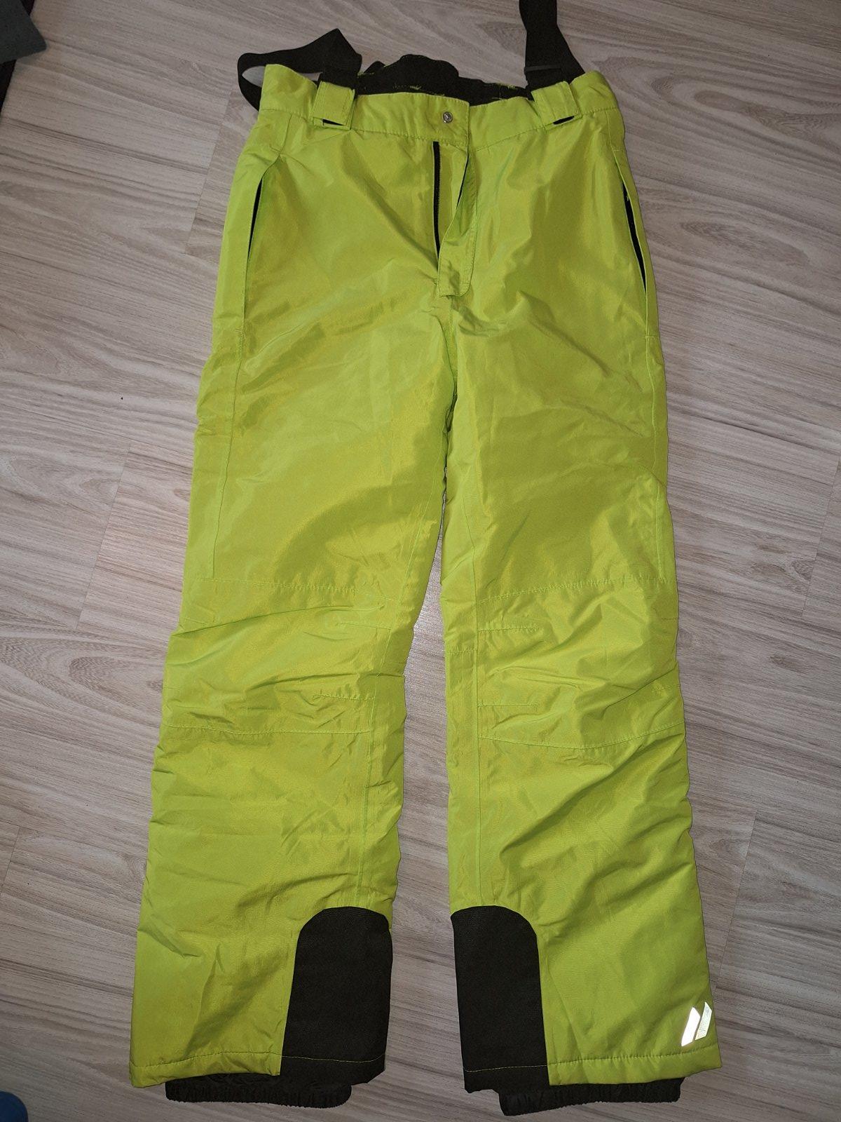 Krásne neonové žlto-zelené oteplovačky, ako nové , veľ.146/152