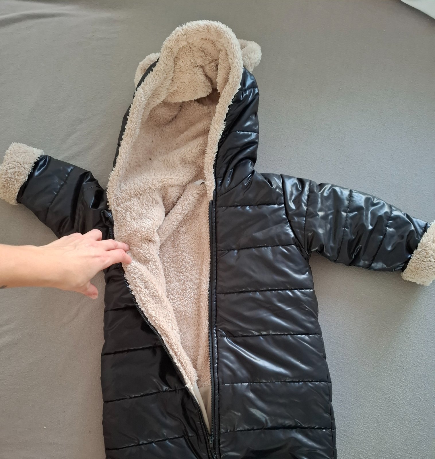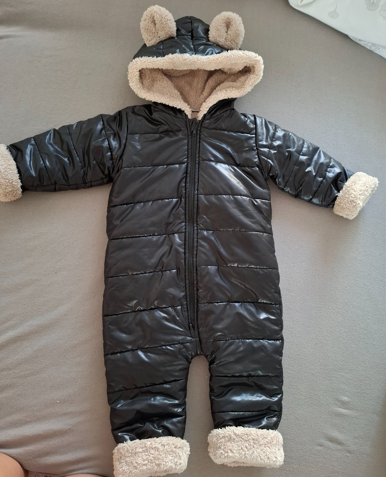 Svetlo šedý overal značky Lupilu,je vytepleny. Menšie poškodenie na zipse, viď foto