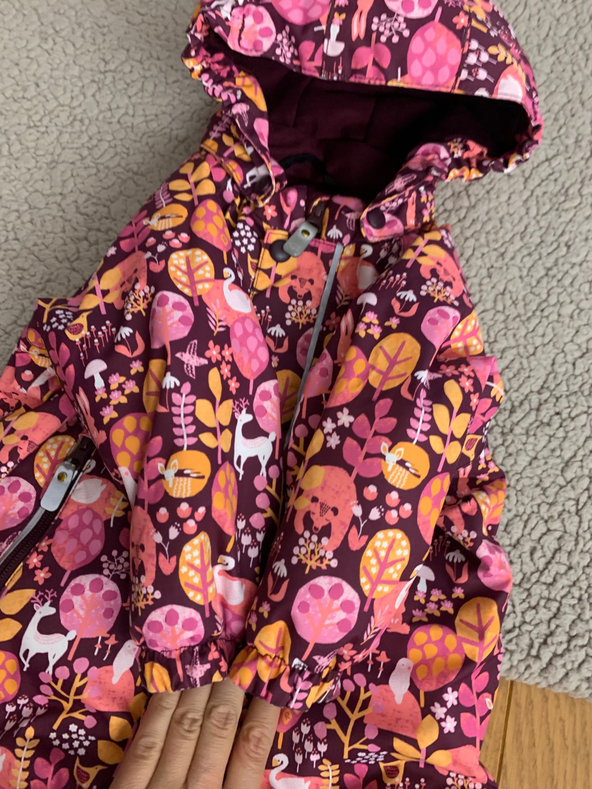Celková dĺžka 68 cm, šírka 38 cm, rukáv od kapucky 38 cm, VD rukáv 26 cm, VD noha 28 cm, šírka cez plecia 38 cm.