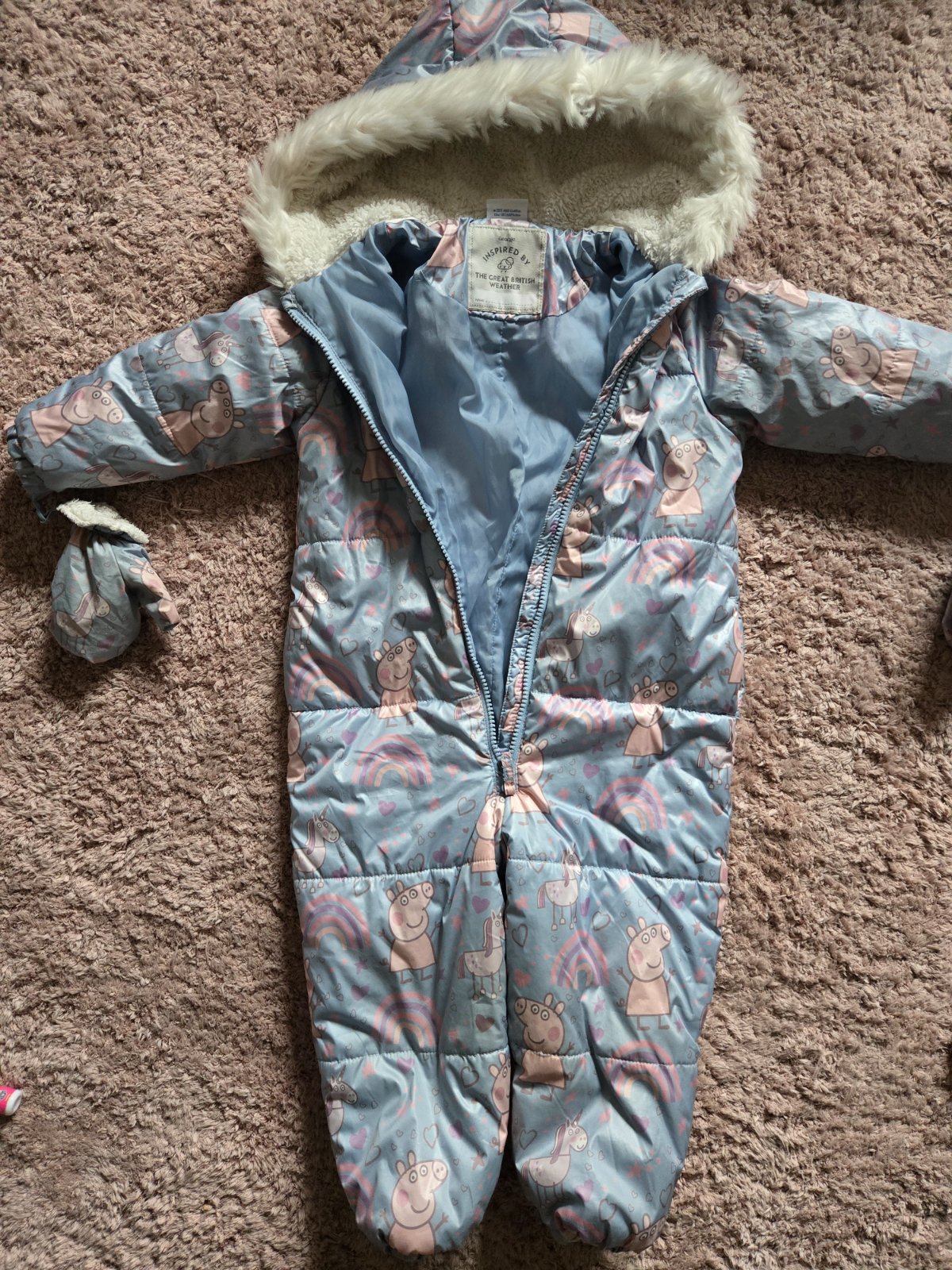 Dievčenská zimná kombinéza zn Cherokee veľkosť 3-4 roky, 104 cm. Je vo veľmi dobrom stave, bez poškodení. Je bledofialovej farby v kombinácii s bielou. Cena je 10€.
