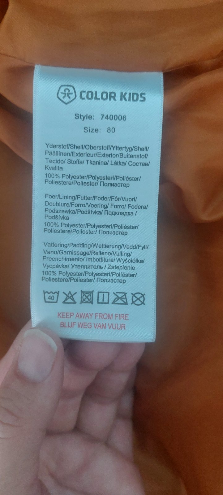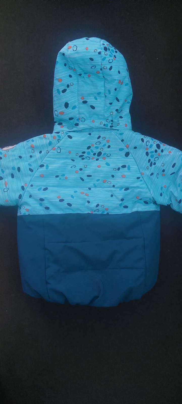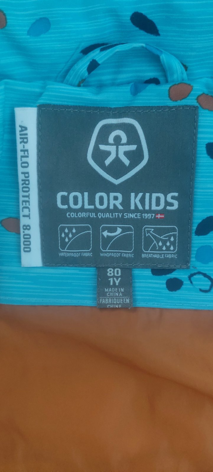 Predám súpravu na zimu dánskej značky Color kids. Veľkosť 80, 1 rok. Syn nosil, keď mal 1rok a 4 mesiace až 1 rok a 6 mesiacov. Obliekol to ešte aj teraz ako vyše 2 ročný, len dĺžka bola trošku kratšia. Vnútri je oranžová saténová podšívka.