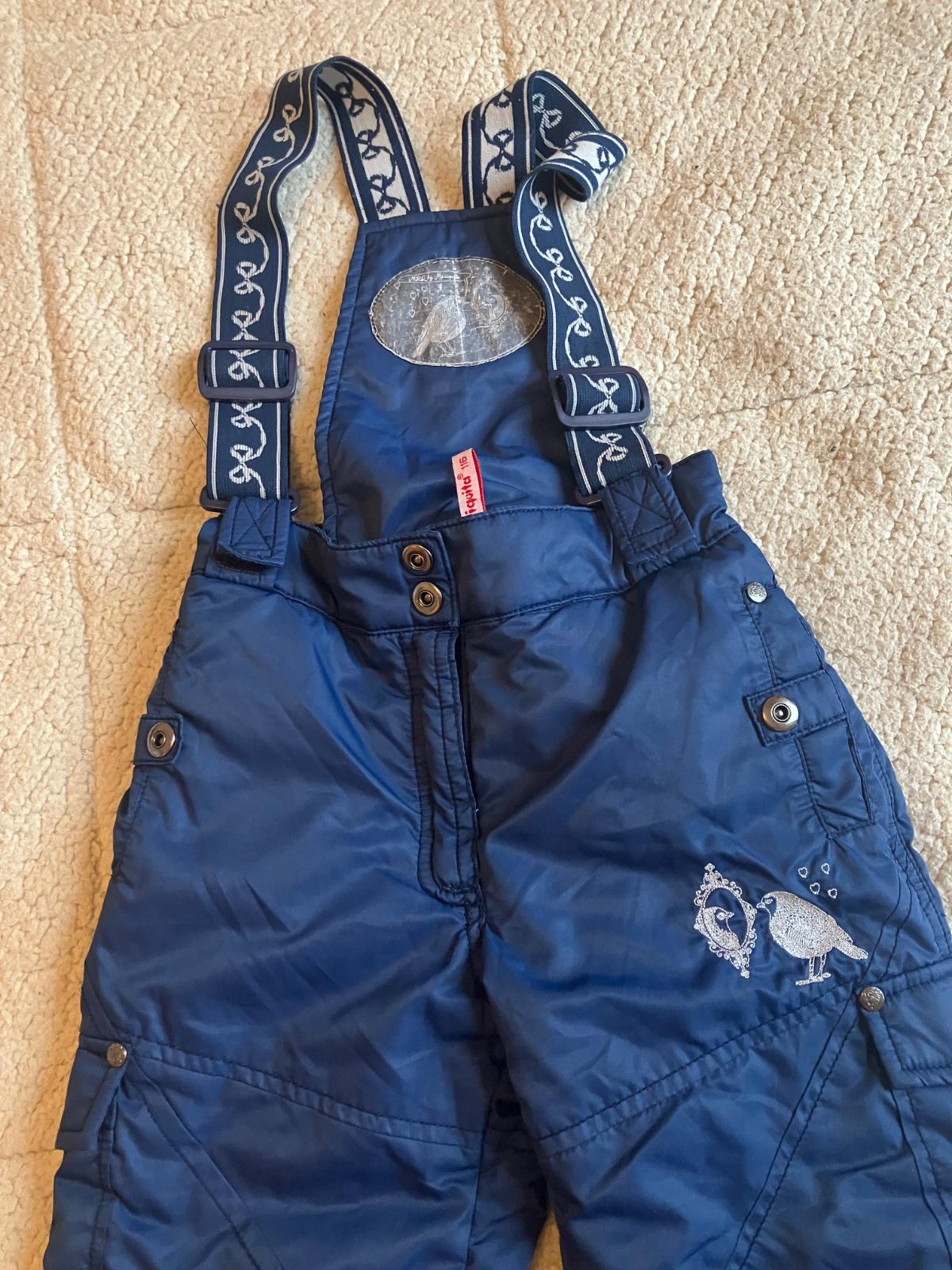 Tmavomodré zateplené otepľovačky v páse na širšiu gumu so sťahovaním vo veľmi dobrom stave pre dievčatá. Môžu poslúžiť aj malému chlapcovi. Dĺžka od pása smerom nadol 64 cm. Veľmi dobrý stav.