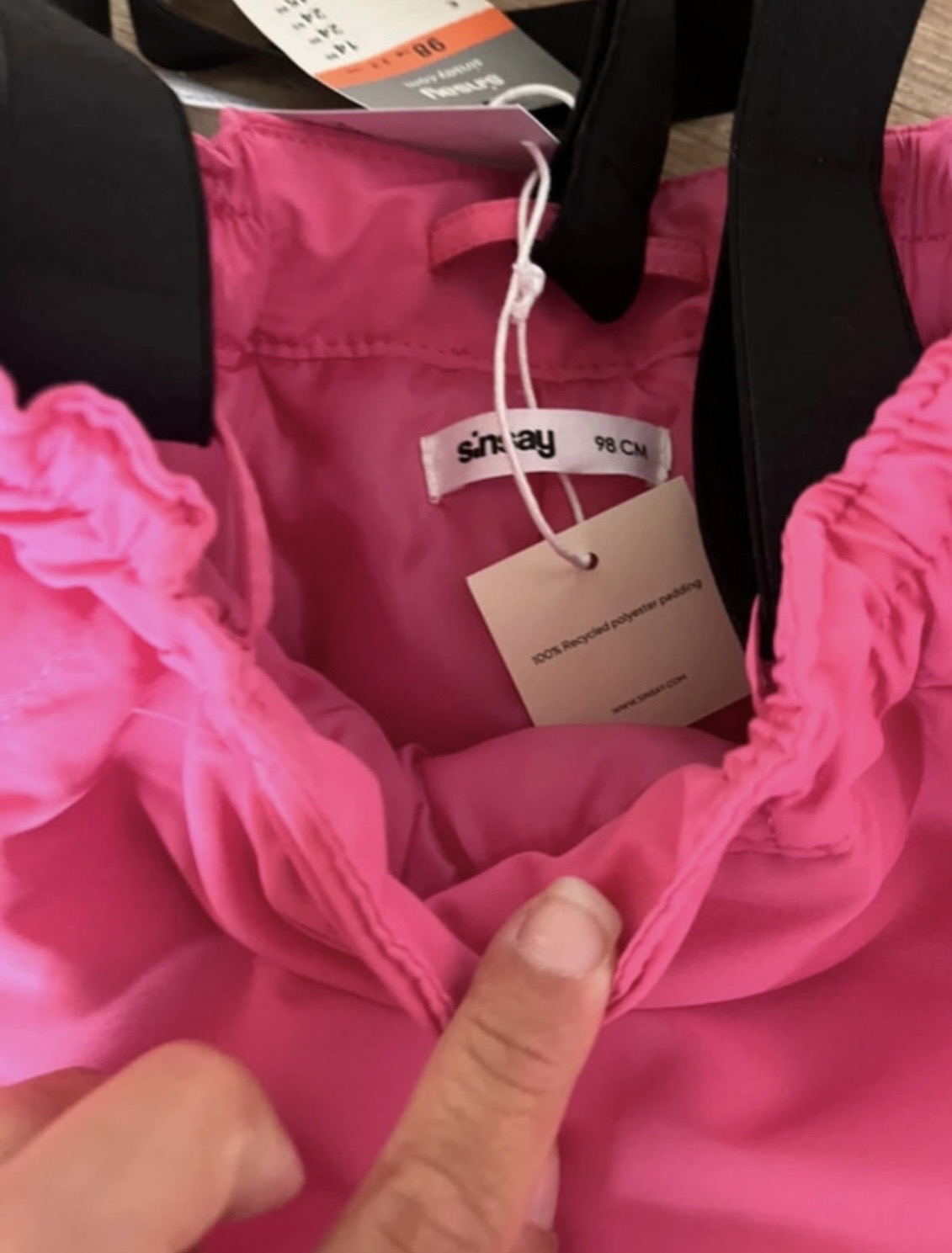 Oteplováčky s malou dierkou a zatrhnutím zvnútra od snehule, dá sa zašiť. Iné poškodenia nemajú. Dĺžka regulovateľná, vačky na zips. Dĺžka 78cm, šírka 27cm pás s gumou. Cena plus pošta.