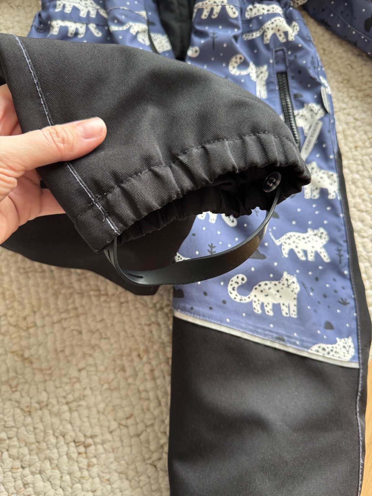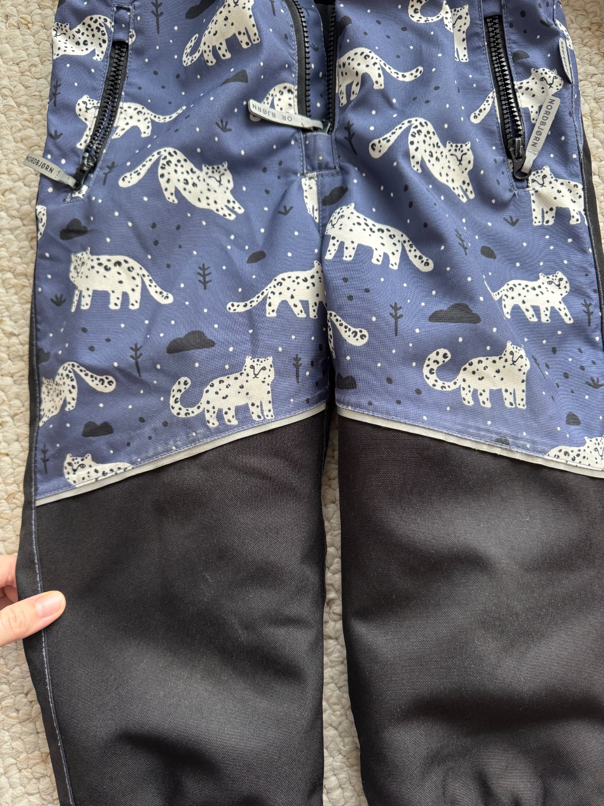 Nosená, vyšúchané kolená a trochu zadok. Ale zatiaľ nepremokala. Zlomil sa jeden zub na opasku ale dá sa to zapínať aj tak.