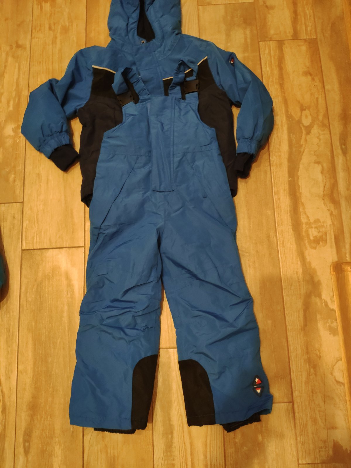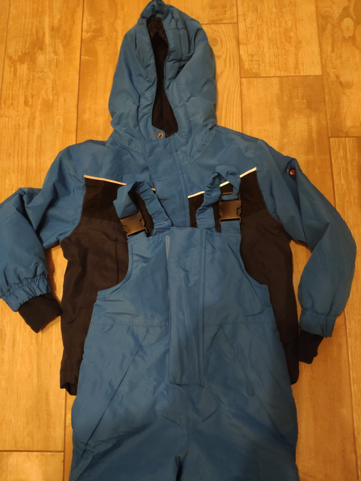 Pekná zachovalá zimná súprava na 2 až 4 roky. Nemá diery, troška šúchance na rukávoch. Vhodná do škôlky aj na sánkovačku.