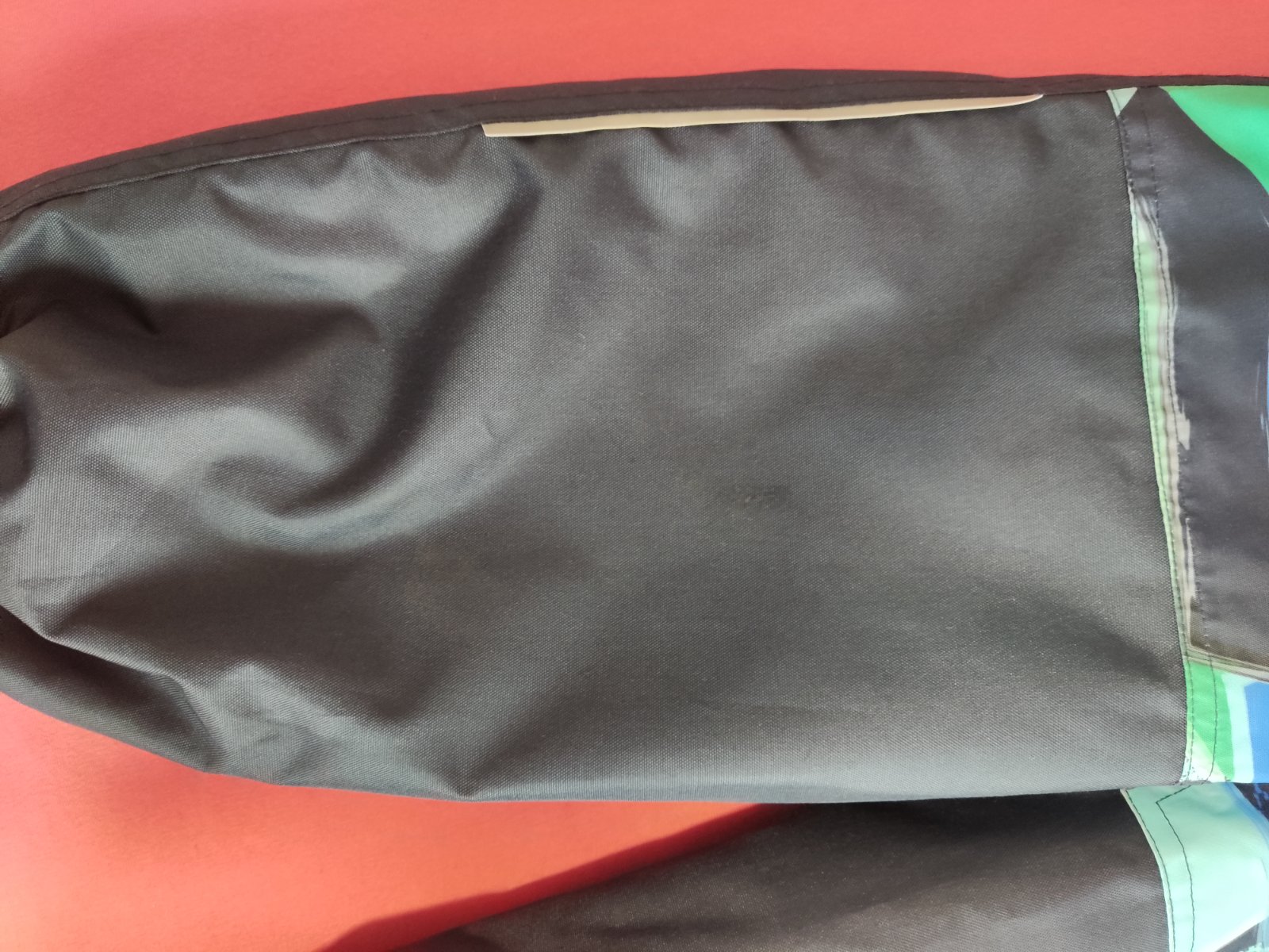 zips sa pri zapinaní zasekáva do vnútorného patentu(nie stále)už od novoty,natrhnuté prešívanie na rukáve(viď foto)