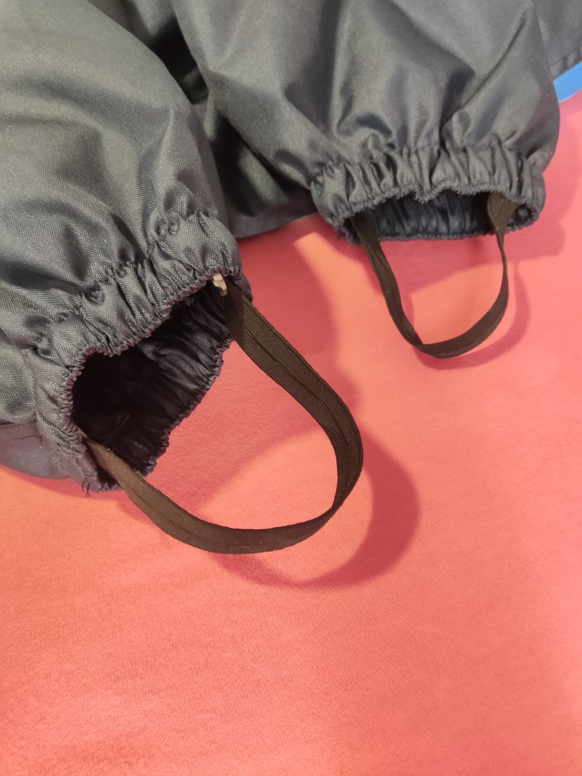 Zimná nepremokavá kombinéza s elastickým pásom. Rukávy sú zakončené elastickou manžetou. Zapínanie na zips a gombíky, šírka sa dá upraviť pomocou gombíkov vnútri obleku. Na prednej strane je vrecko...