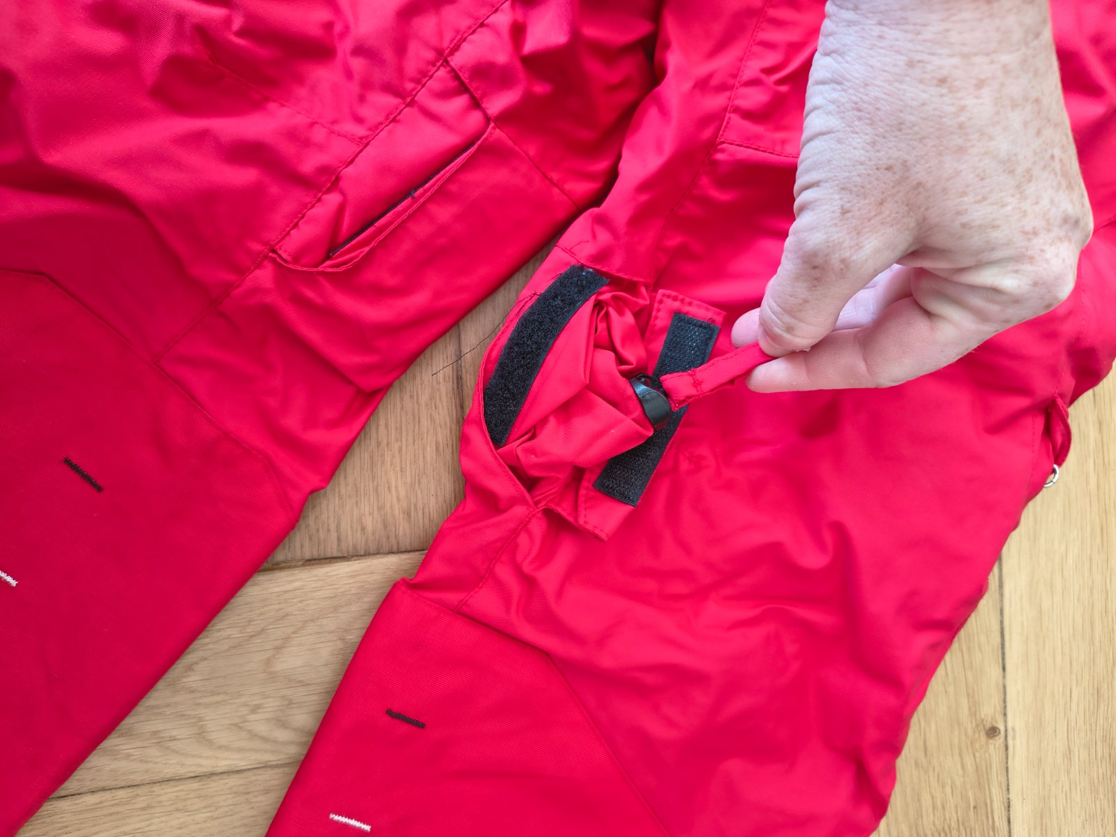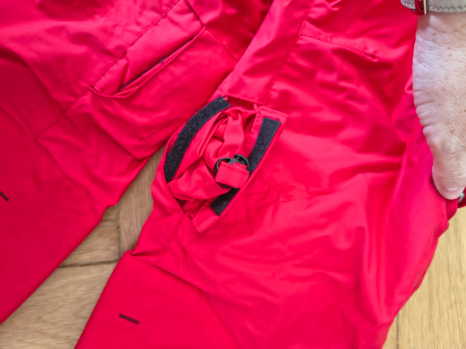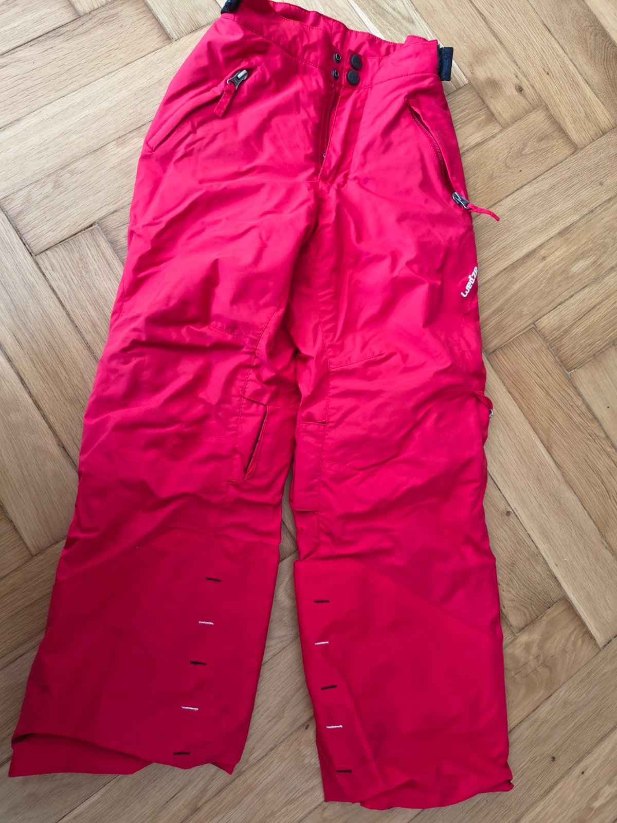 Predám super otepľovačky červenej farby. Po bokoch majú šnúrky na sťahovanie dĺžku, takže sa dajú ponosiť dlhšie. Veľkosť 115/124.