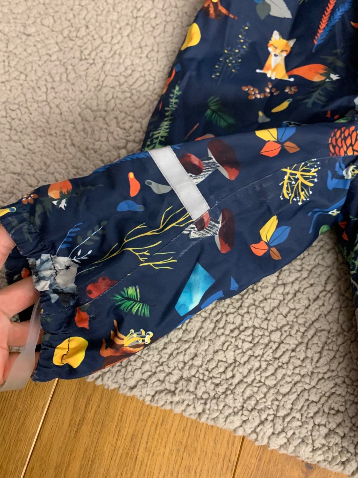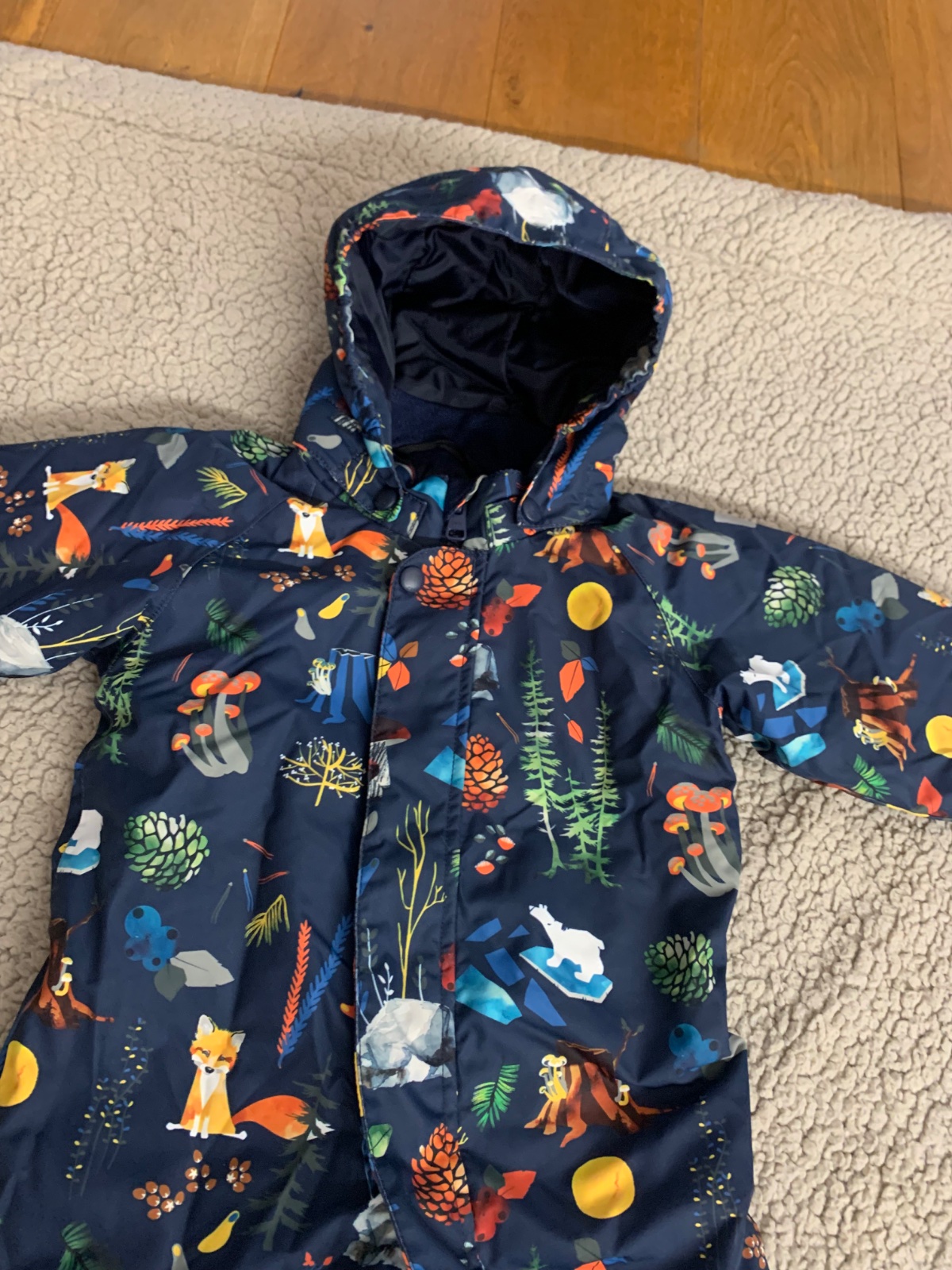 Celková dĺžka 68 cm, šírka 38 cm, rukáv od kapucky 38 cm, VD rukáv 26 cm, VD noha 28 cm, šírka cez plecia 38 cm.