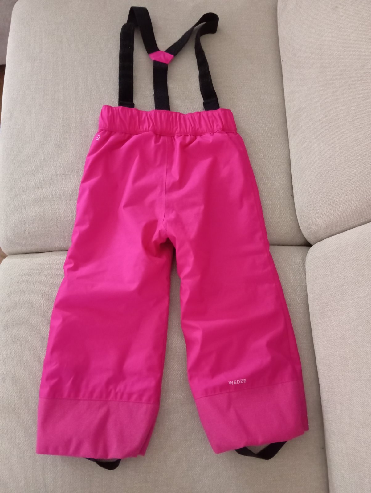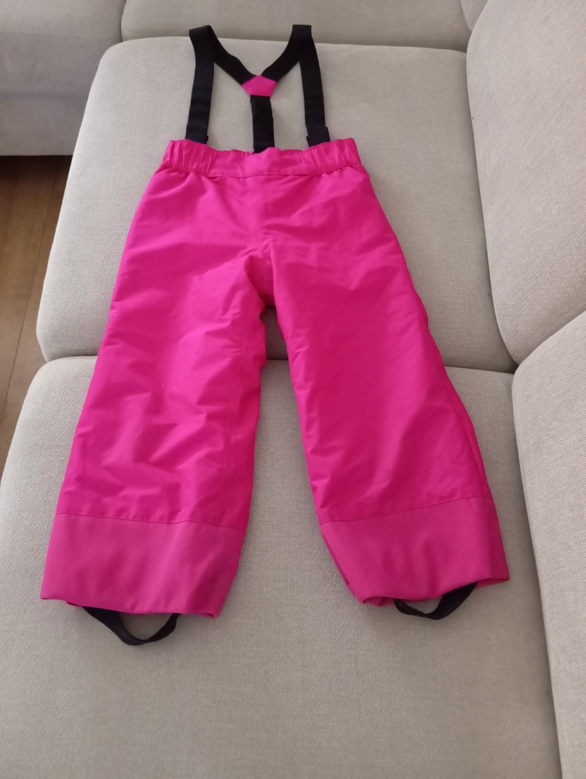 Predám otepľovačky veľkosť 104, dĺžka 63cm, vnútorná dĺžka 40cm a pás 2x27cm. Traky sú na suchý zips. Malá dierka pod pravým kolenom,inak vo veľmi peknom stave.