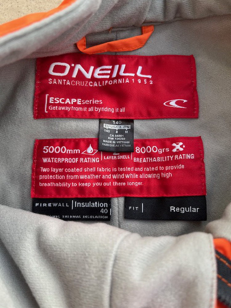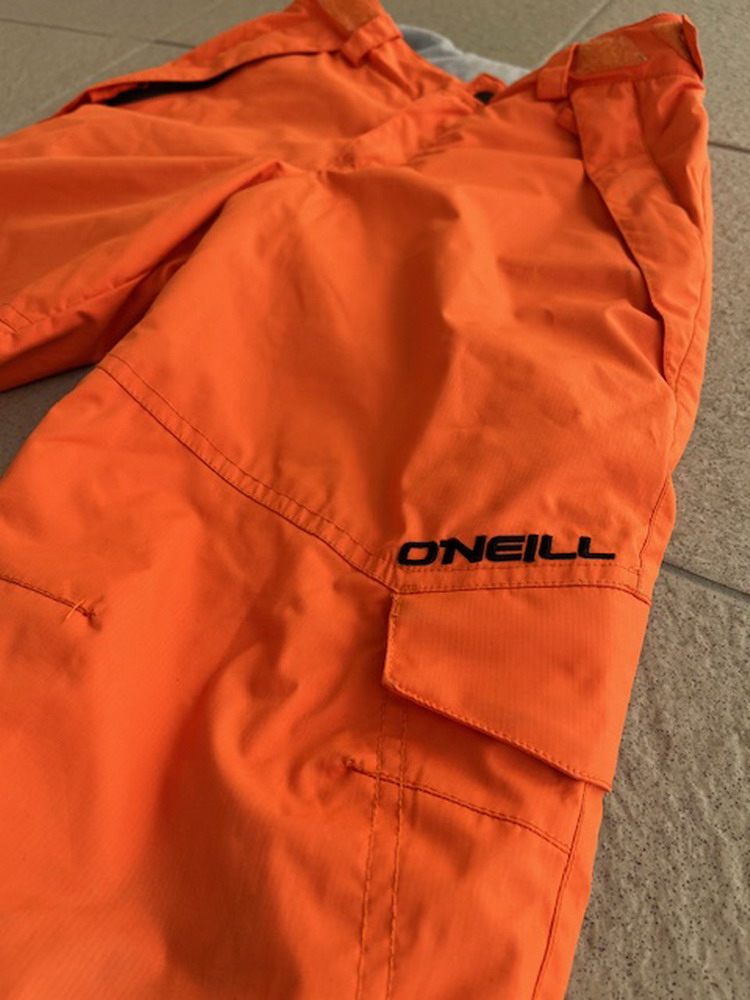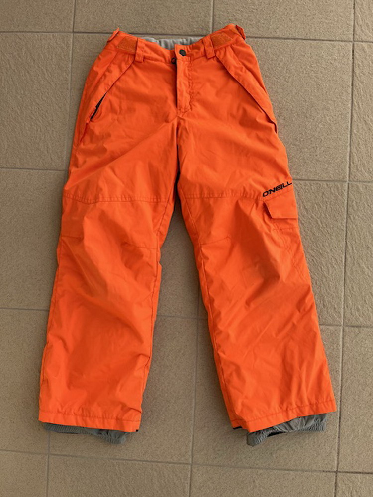 Chlapčenské lyžiarske/snowboardové nohavice značky O´Neill, veľkosť je uvedená 140, majú 2 bočné vrecká, disponujú podlepenými kritickými švami a pevným snehovým návlekom, pevný pás má pútka na opasok, takže je možné jeho šírku regulovať.