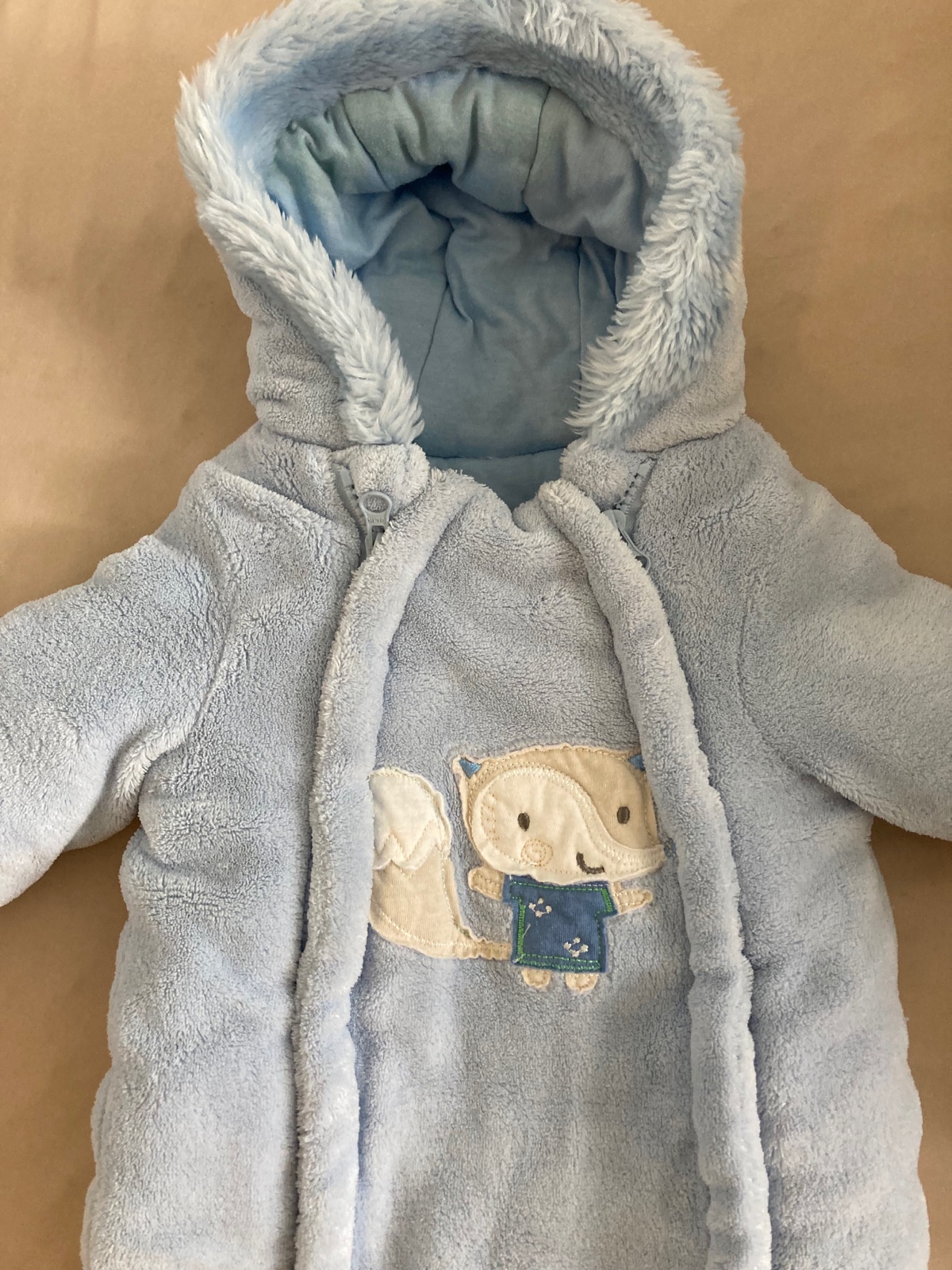 Teply overal na zimu, velkost 0-3mno vyuzijete aj neskor, mensie fliaciky vid foto inak ok, sotva pouzivany.